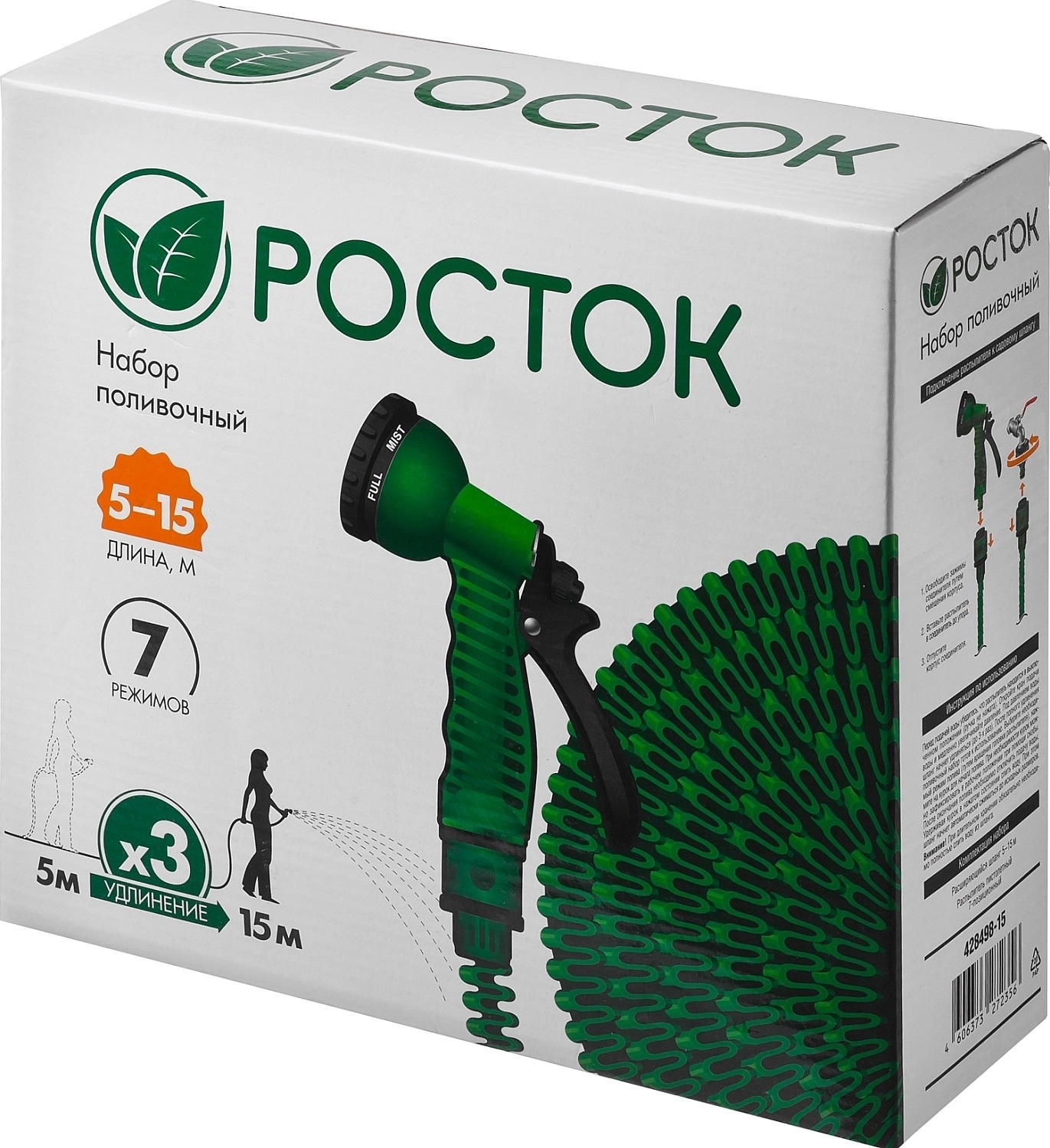 Удлиняющийся шланг Р-15, 5 - 15 м, пистолет поливочный, коннекторы арт. 106224