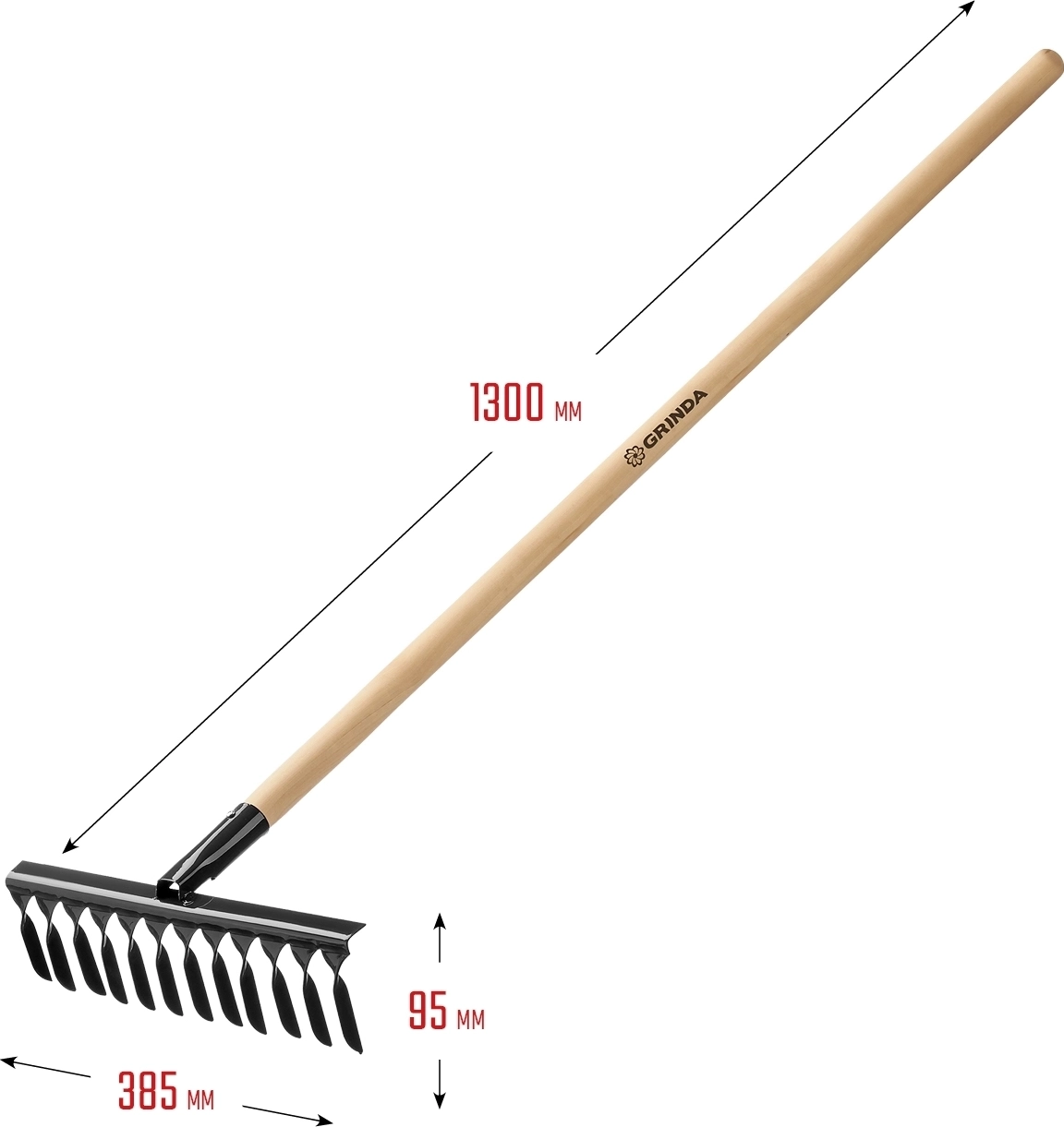 Садовые грабли GRINDA GS-12 WOOD, 385 х 95 х 1300 мм, 12 витых зубцов, углеродистая сталь, антикор. покрытие, черенок дерев. высш. сорт