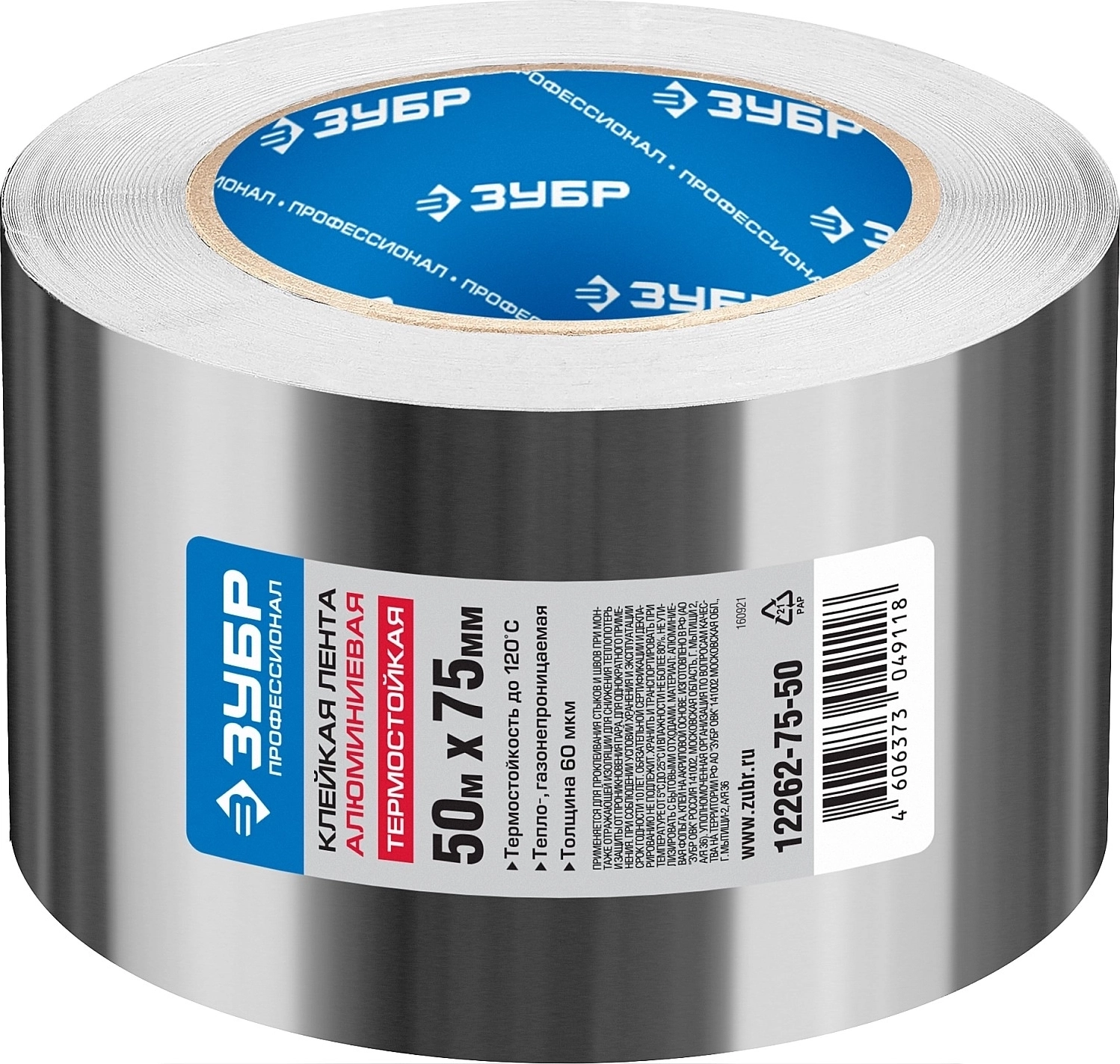 Самоклеящаяся алюминиевая лента ЗУБР 75 мм 50 м 60 гр/м2