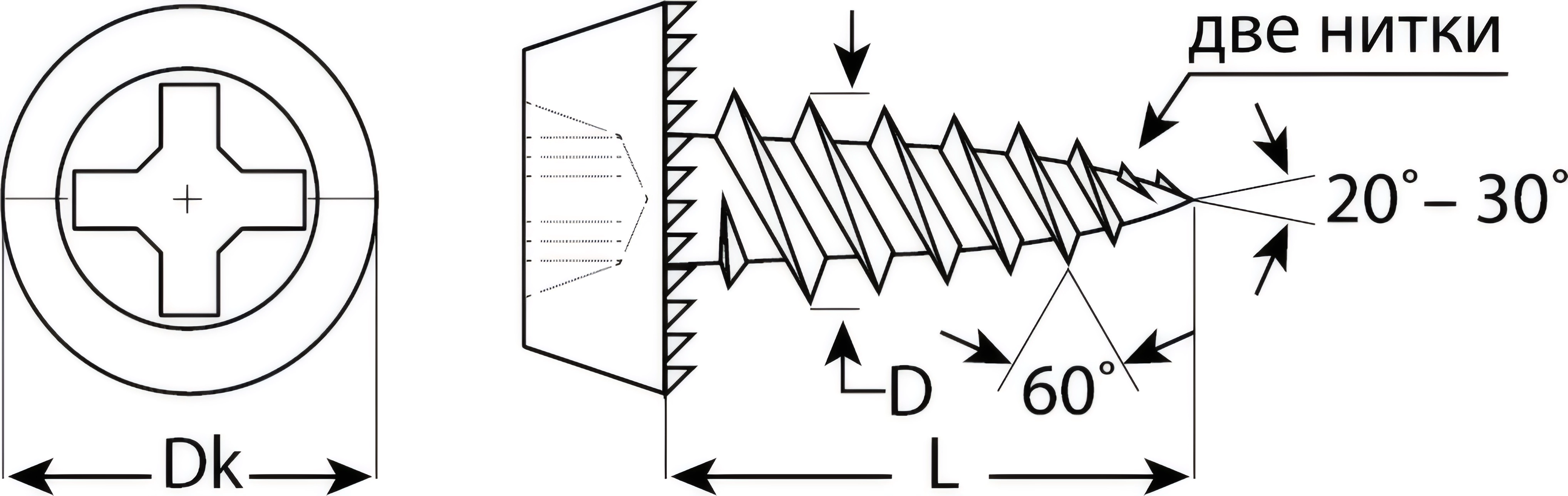 - Насечки под головкой предотвращают самопроизвольное откручивание самореза