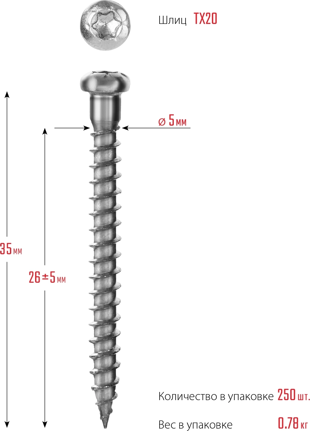 - Износостойкий шлиц TORX предотвращает срывание биты при закручивании и обеспечивает большой крутящий момент.