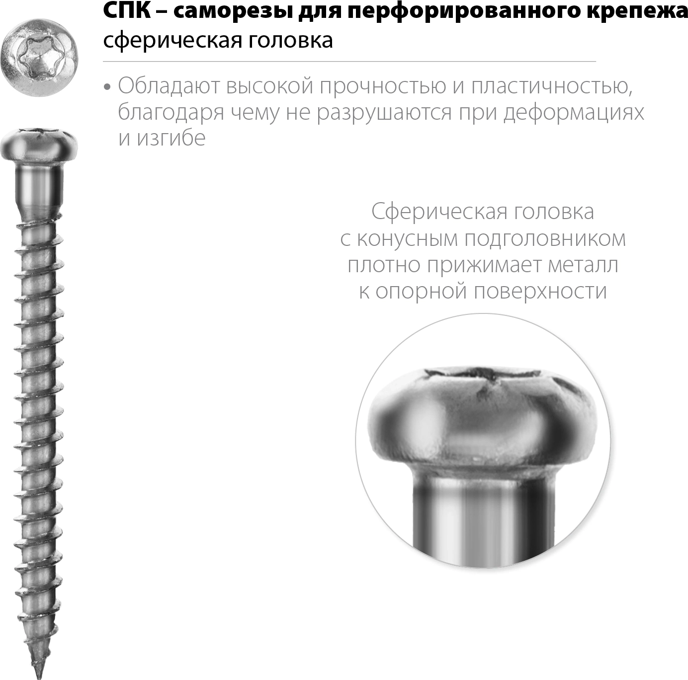 - Сферическая головка с конусным подголовником плотно прижимает листовой металл к опорной поверхности.