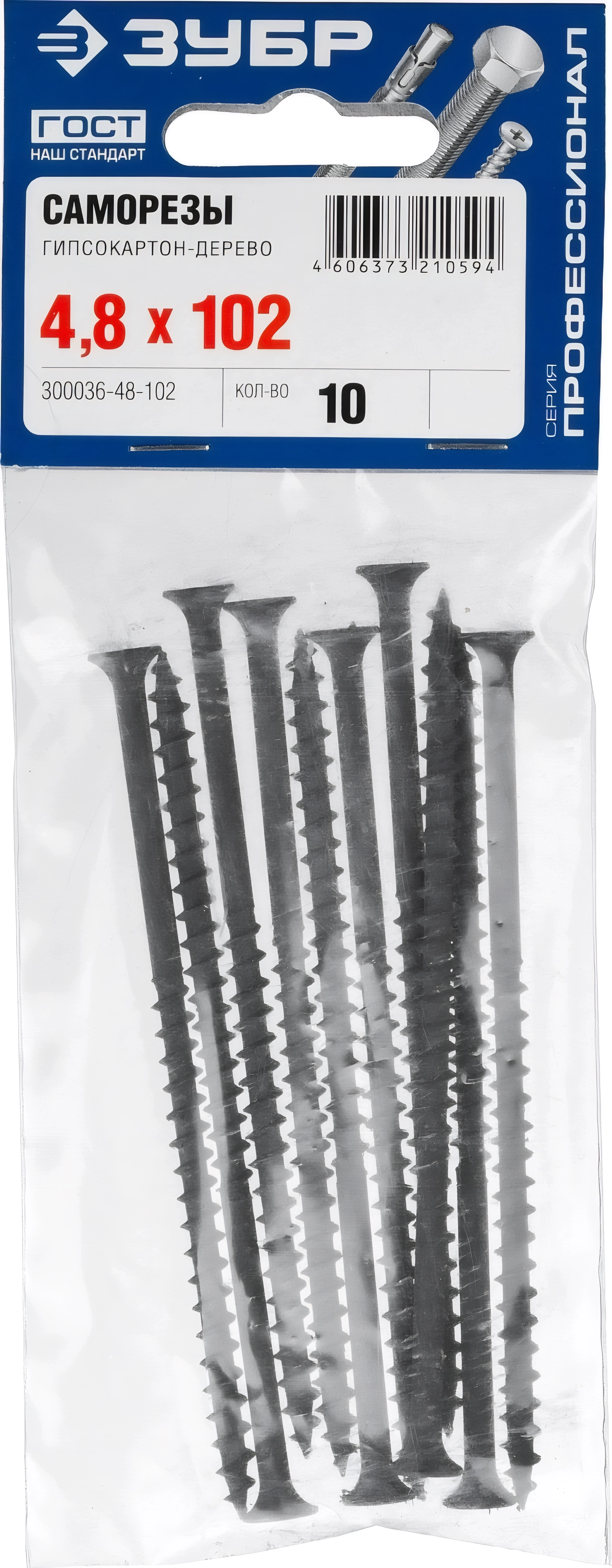 Саморез гипсокартон-дерево ЗУБР СГД 102 х 4.8 мм фосфатированное покрытие 10 шт