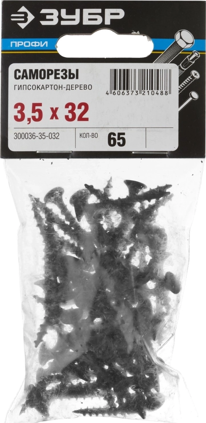 Саморез гипсокартон-дерево ЗУБР СГД 32 х 3.5 мм фосфатированное покрытие 65 шт