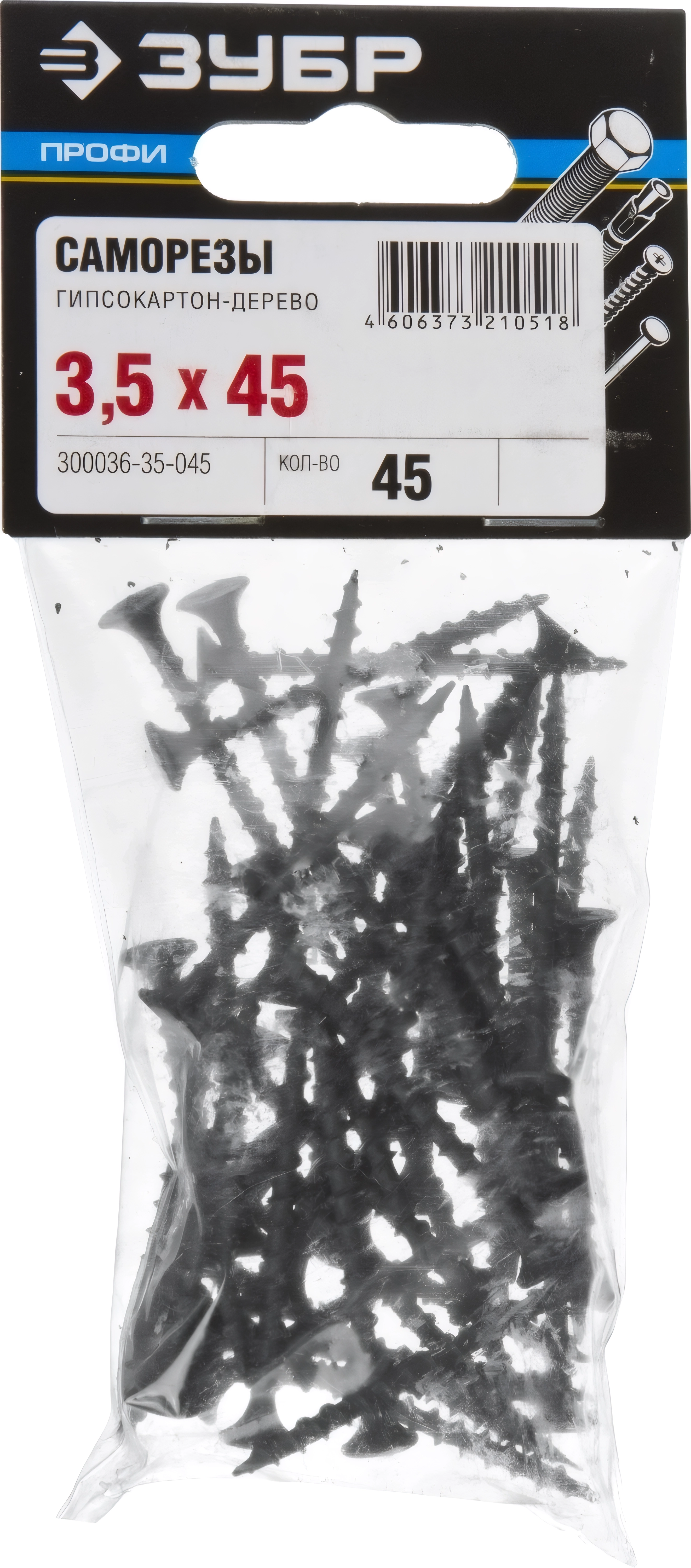 Саморез гипсокартон-дерево ЗУБР СГД 45 х 3.5 мм фосфатированное покрытие 45 шт