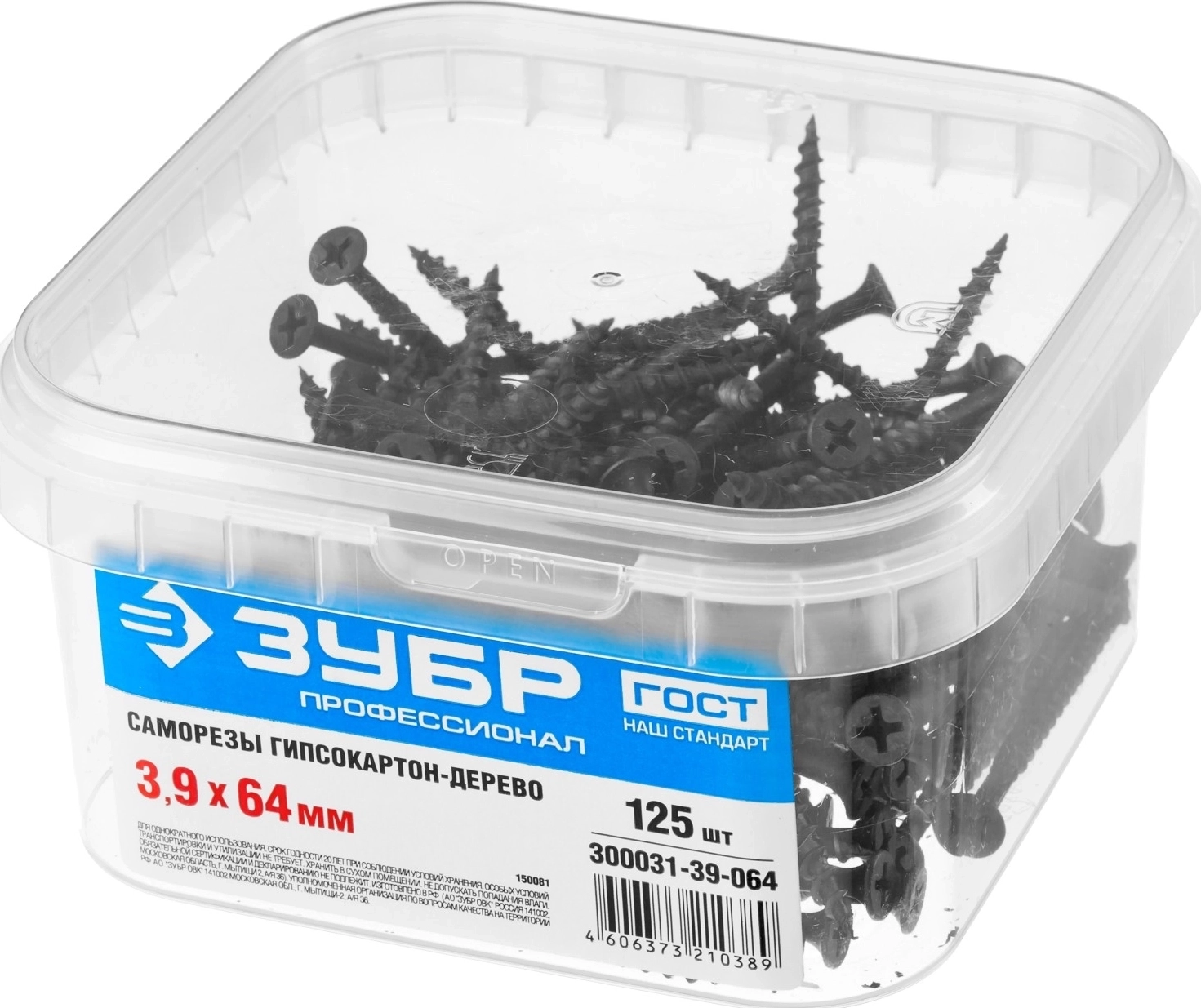 Саморез гипсокартон-дерево ЗУБР СГД 64 х 3.9 мм фосфатированное покрытие 125 шт
