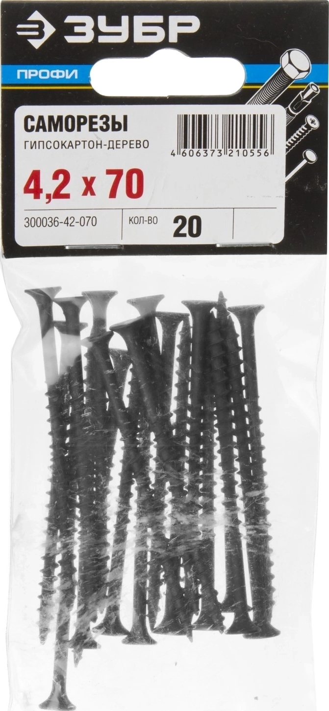 Саморез гипсокартон-дерево ЗУБР СГД 70 х 4.2 мм фосфатированное покрытие 20 шт