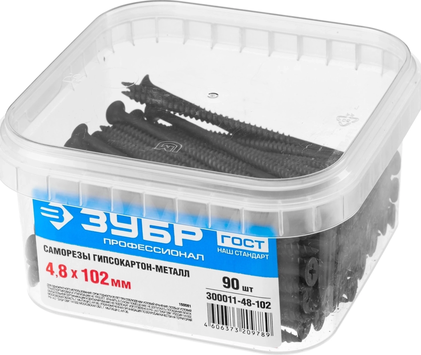 Саморез гипсокартон-металл ЗУБР СГМ 102 х 4.8 мм фосфатированное покрытие 90 шт