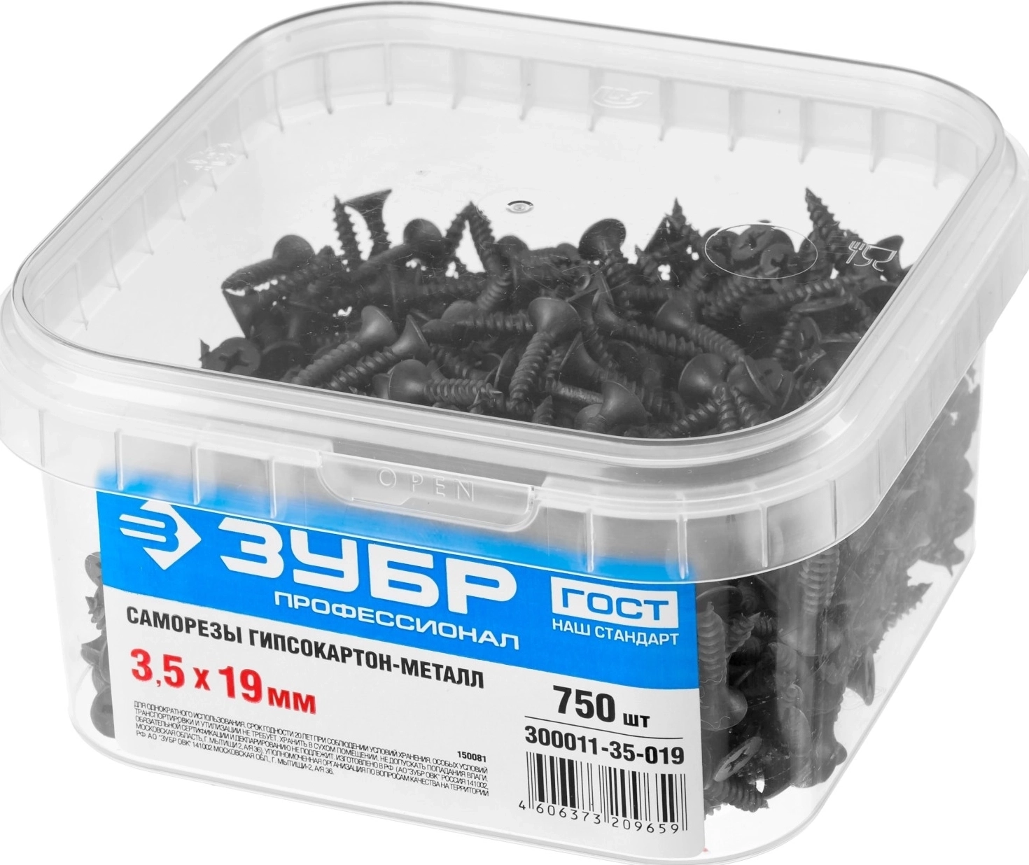 Саморез гипсокартон-металл ЗУБР СГМ 19 х 3.5 мм фосфатированное покрытие 750 шт