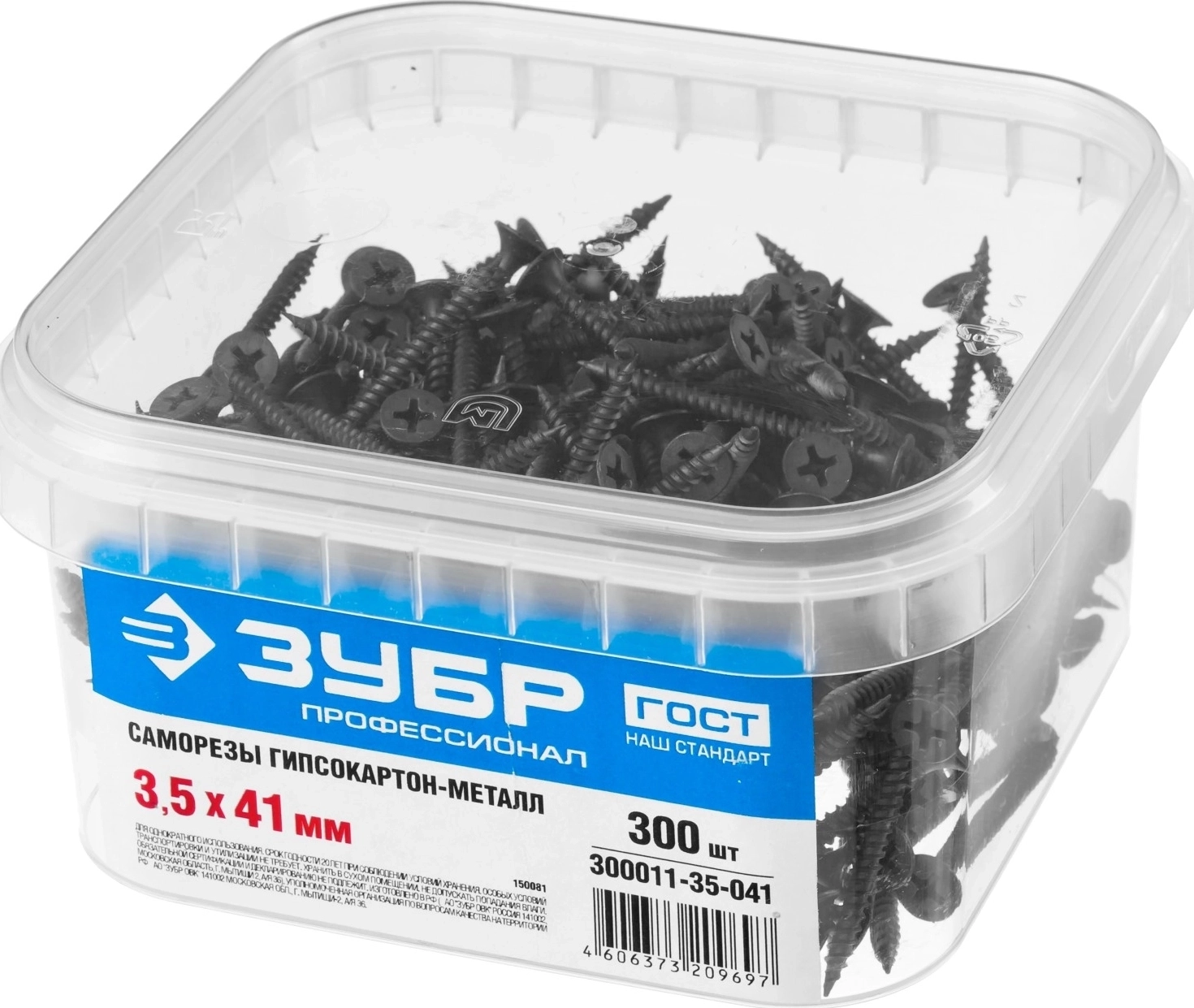 Саморез гипсокартон-металл ЗУБР СГМ 41 х 3.5 мм фосфатированное покрытие 300 шт