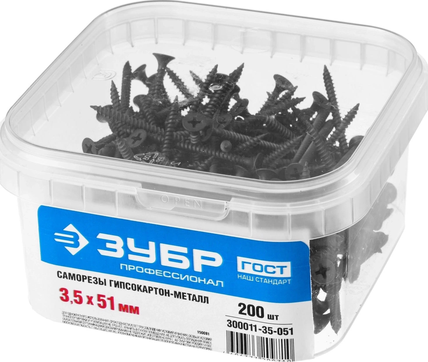 Саморез гипсокартон-металл ЗУБР СГМ 51 х 3.5 мм фосфатированное покрытие 200 шт