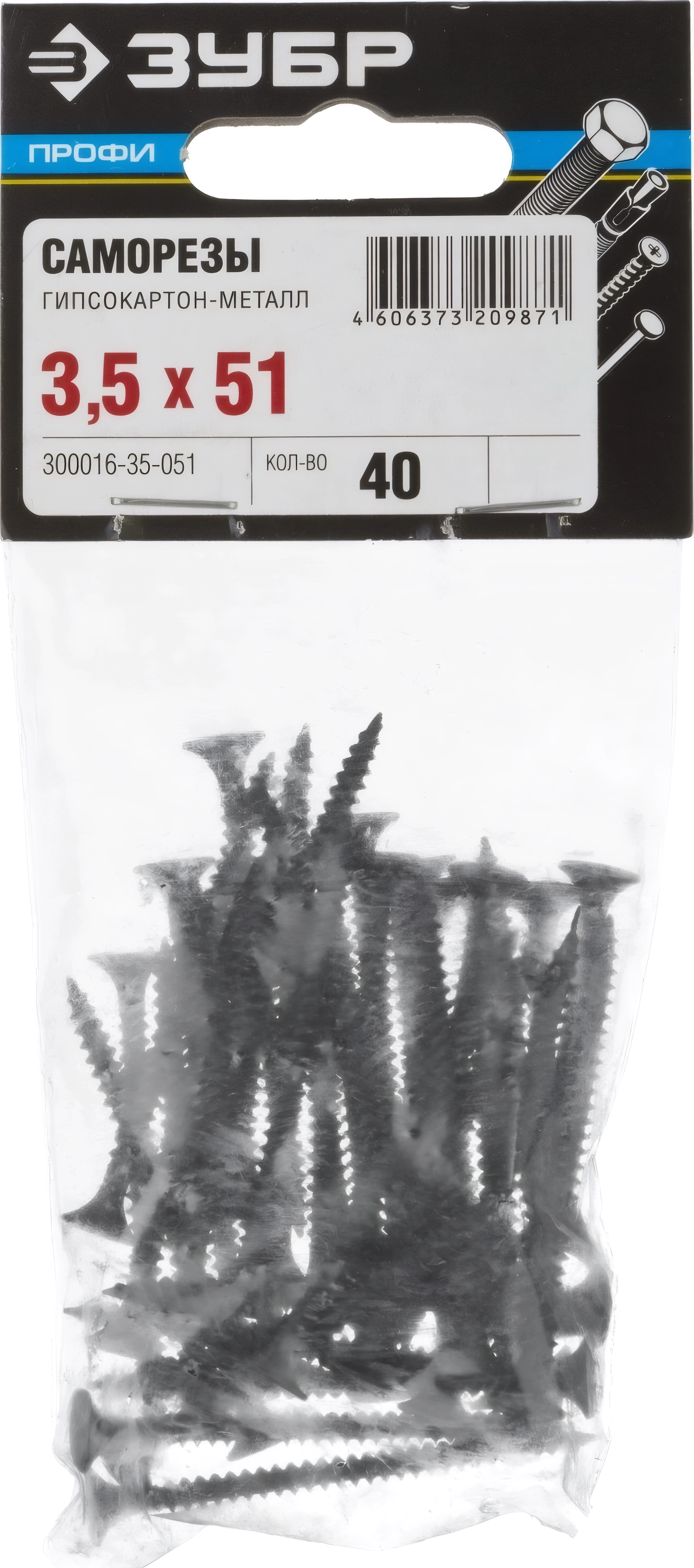 Саморез гипсокартон-металл ЗУБР СГМ 51 х 3.5 мм фосфатированное покрытие 40 шт