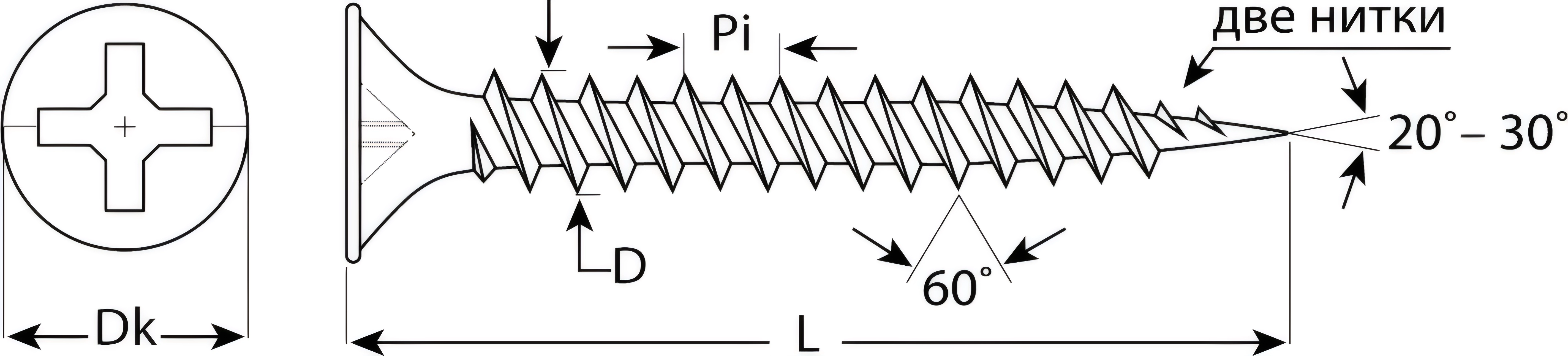 - Резьба с частым шагом разработана для крепления гипсокартона к металлическим профилям.