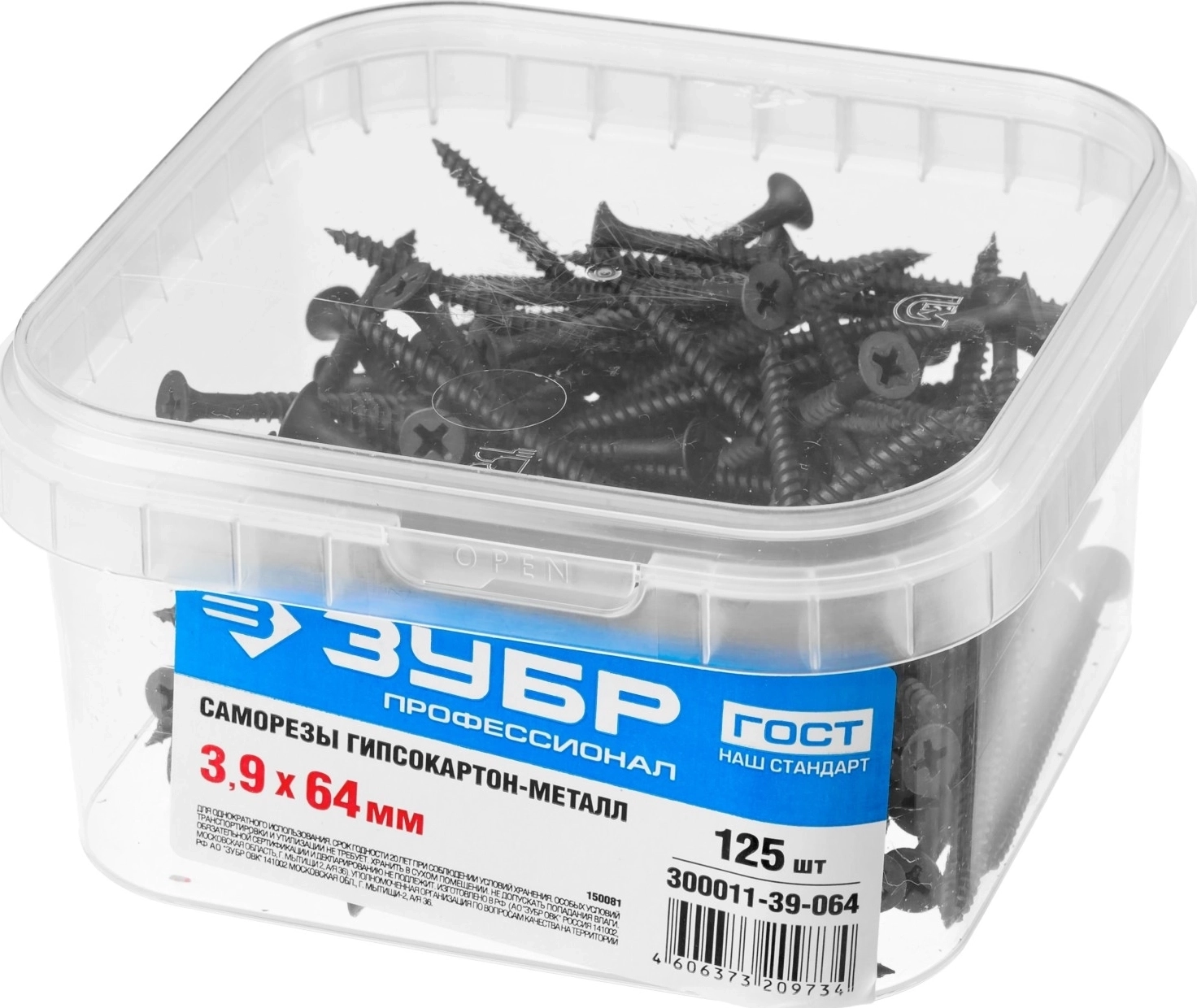 Саморез гипсокартон-металл ЗУБР СГМ 64 х 3.9 мм фосфатированное покрытие 125 шт