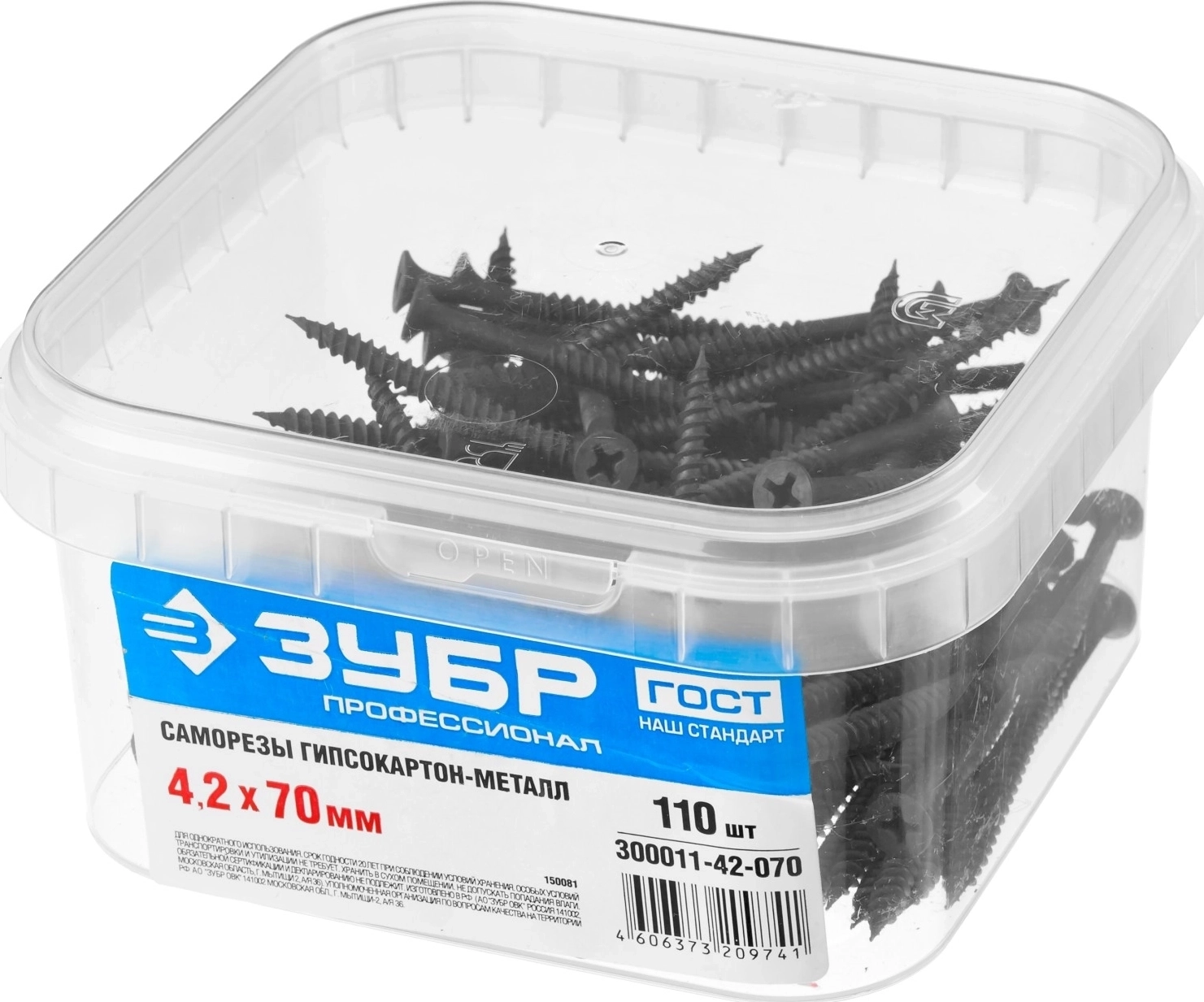 Саморез гипсокартон-металл ЗУБР СГМ 70 х 4.2 мм фосфатированное покрытие 110 шт