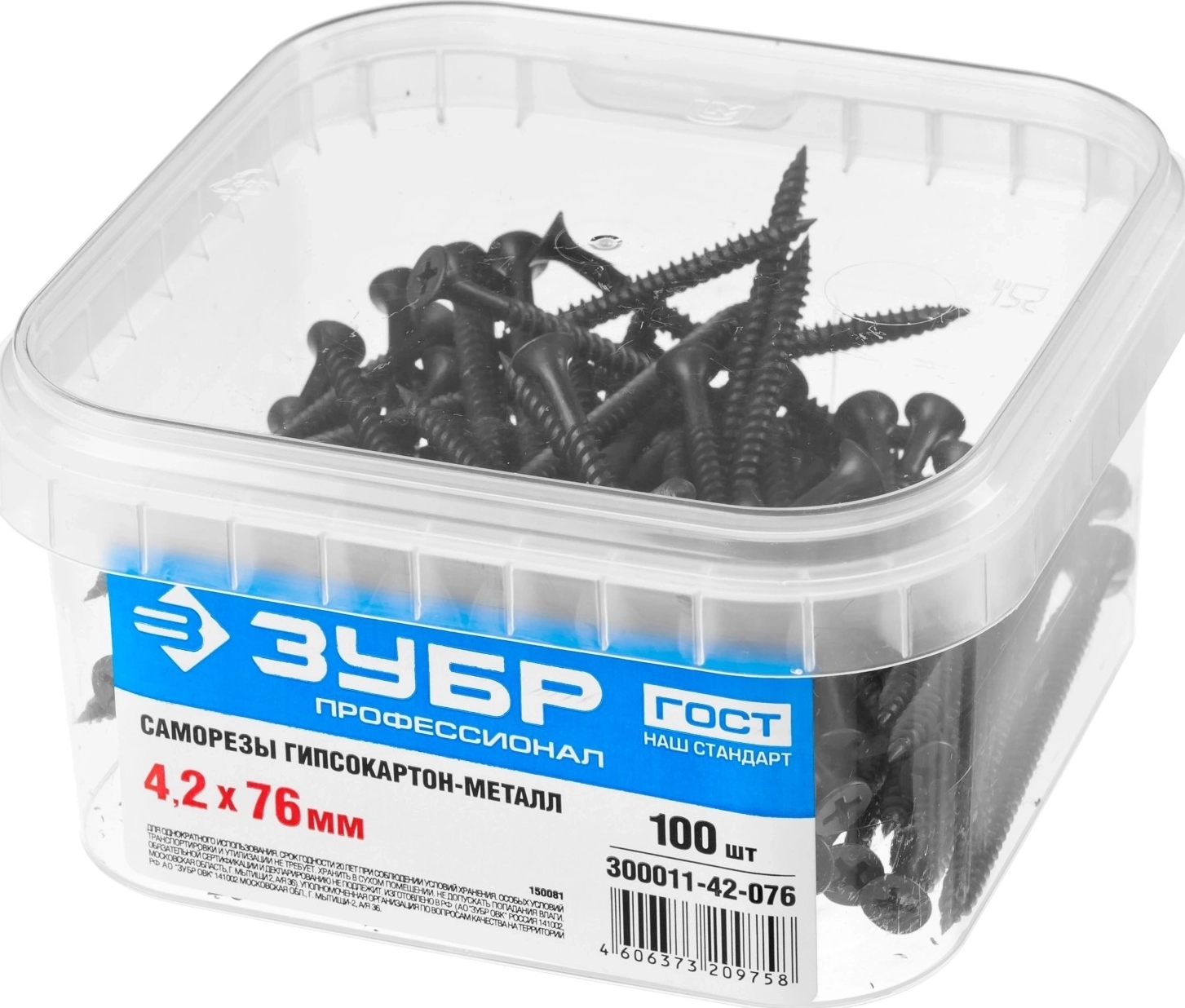 Саморез гипсокартон-металл ЗУБР СГМ 76 х 4.2 мм фосфатированное покрытие 100 шт