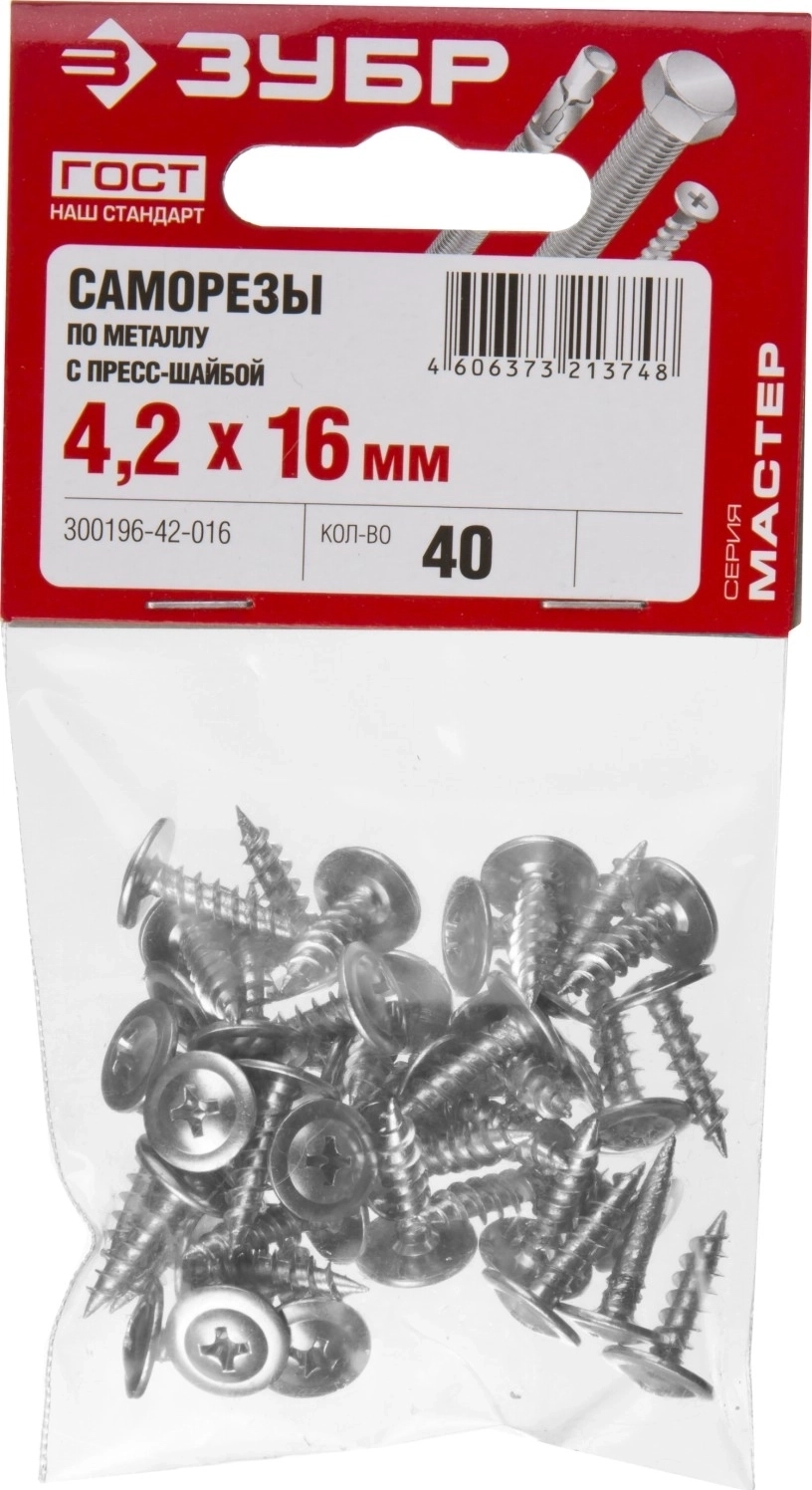 Саморез с пресс-шайбой ЗУБР ПШМ, 16 х 4.2 мм, цинк, 40 шт