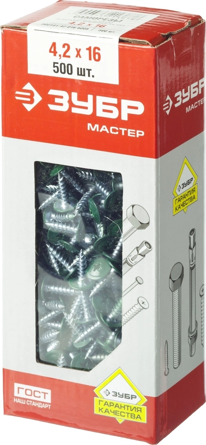 Саморез с пресс-шайбой ЗУБР ПШМ 6005, 16 х 4.2 мм, зелёный насыщ., 500 шт