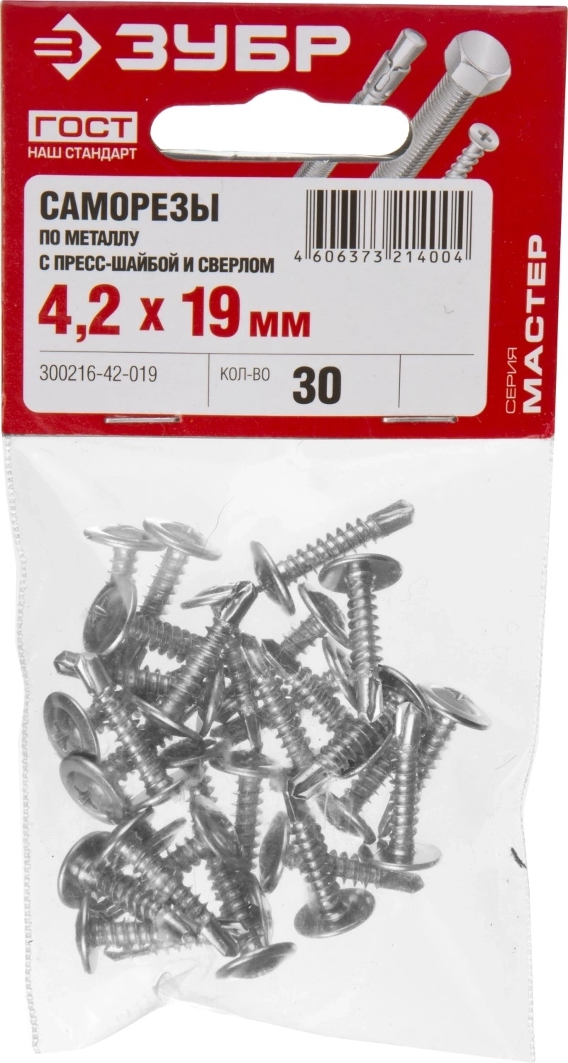 Саморез с пресс-шайбой и сверлом ЗУБР ПШМ-С, 19 х 4.2 мм, цинк, 30 шт