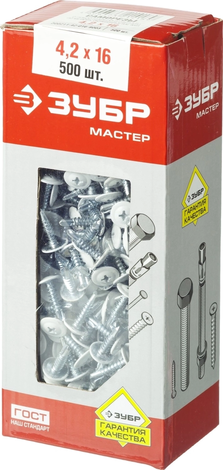 Саморез с пресс-шайбой и сверлом ЗУБР ПШМ-С 9003, 16 х 4.2 мм, белый, 500 шт