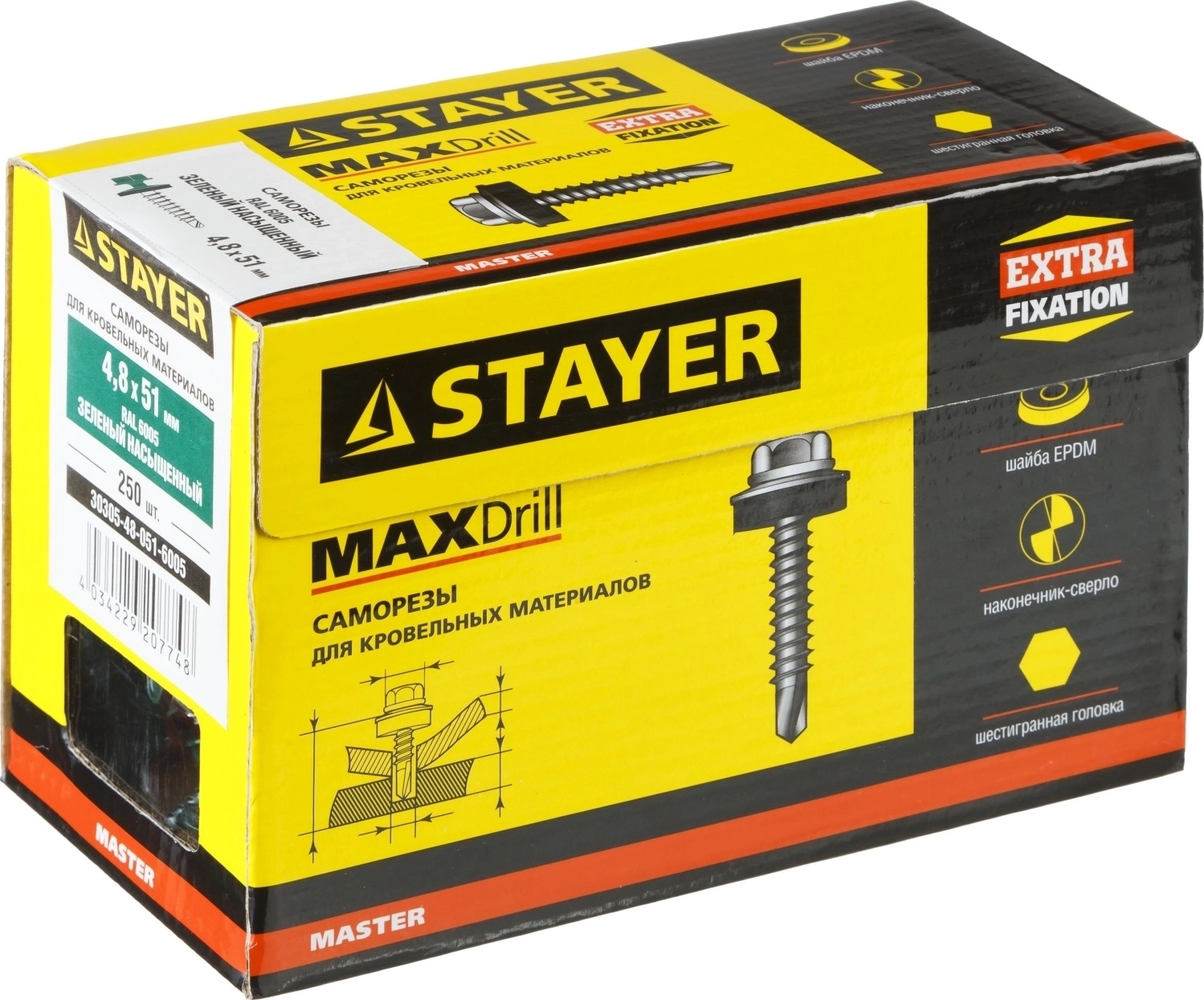 Саморезы СКД кровельные STAYER RAL 6005 зеленый насыщенный 51 х 4.8 мм 250 шт для деревянной обрешетки