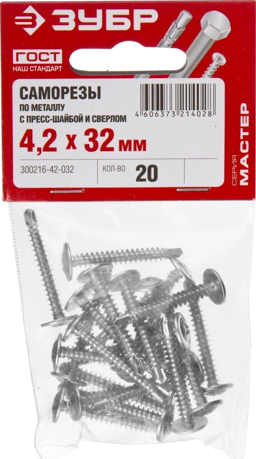 Саморез с пресс-шайбой и сверлом ПШМ-С, 32 х 4.2 мм, цинк, 20 шт арт. 107776
