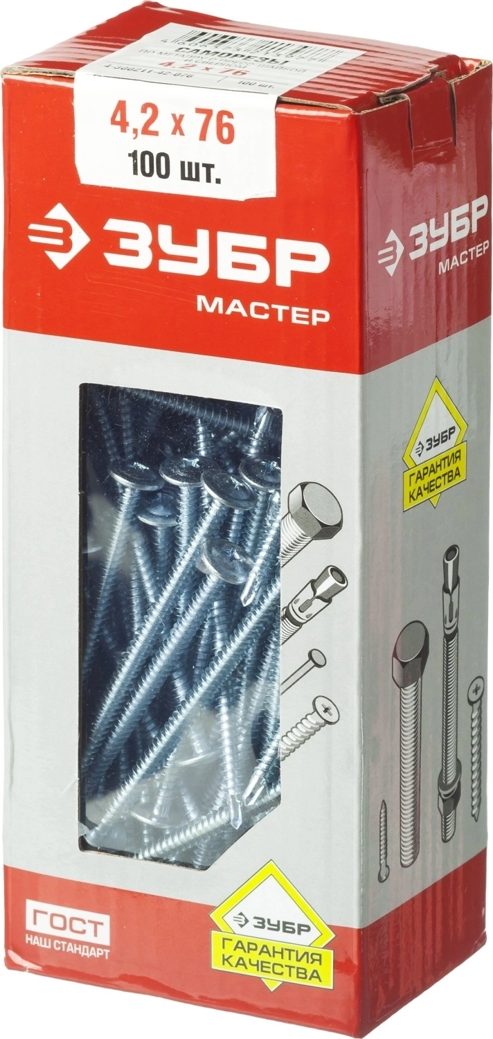 Саморез с пресс-шайбой и сверлом ПШМ-С, 76 х 4.2 мм, цинк, 100 шт арт. 107786