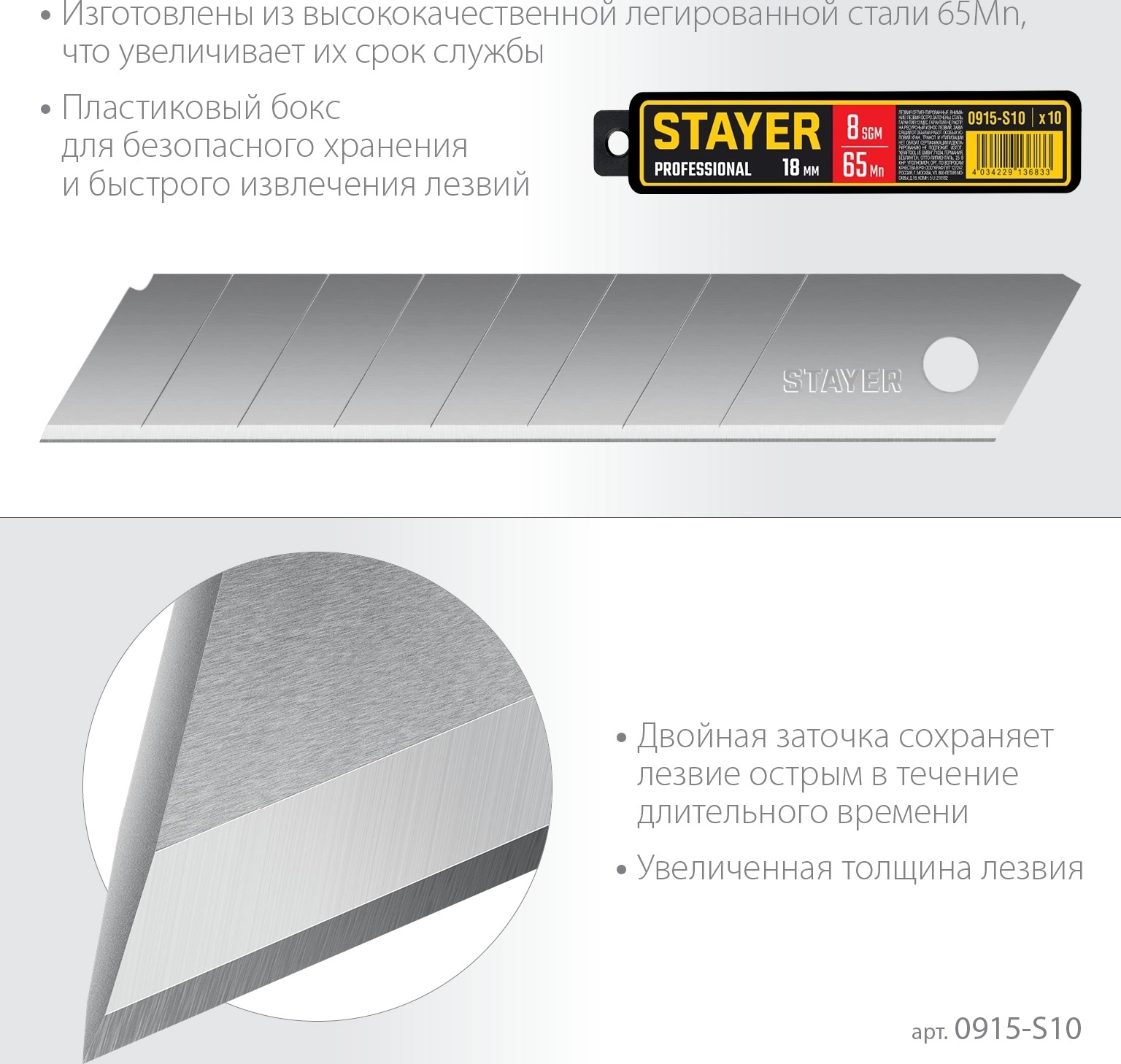 Сегментированные лезвия Professional STAYER 18 мм 10 шт