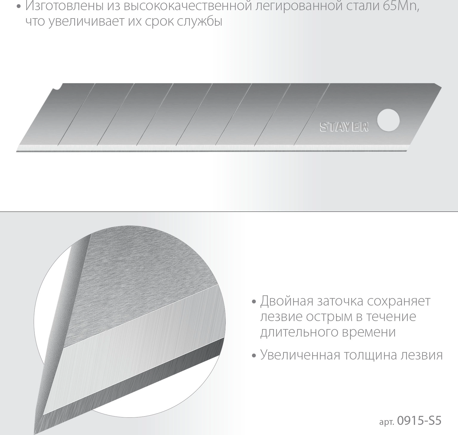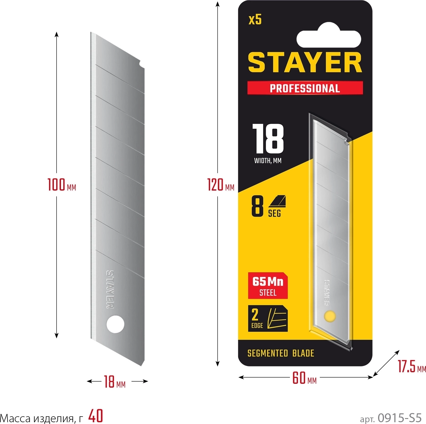 Сегментированные лезвия Professional STAYER 18 мм 5 шт