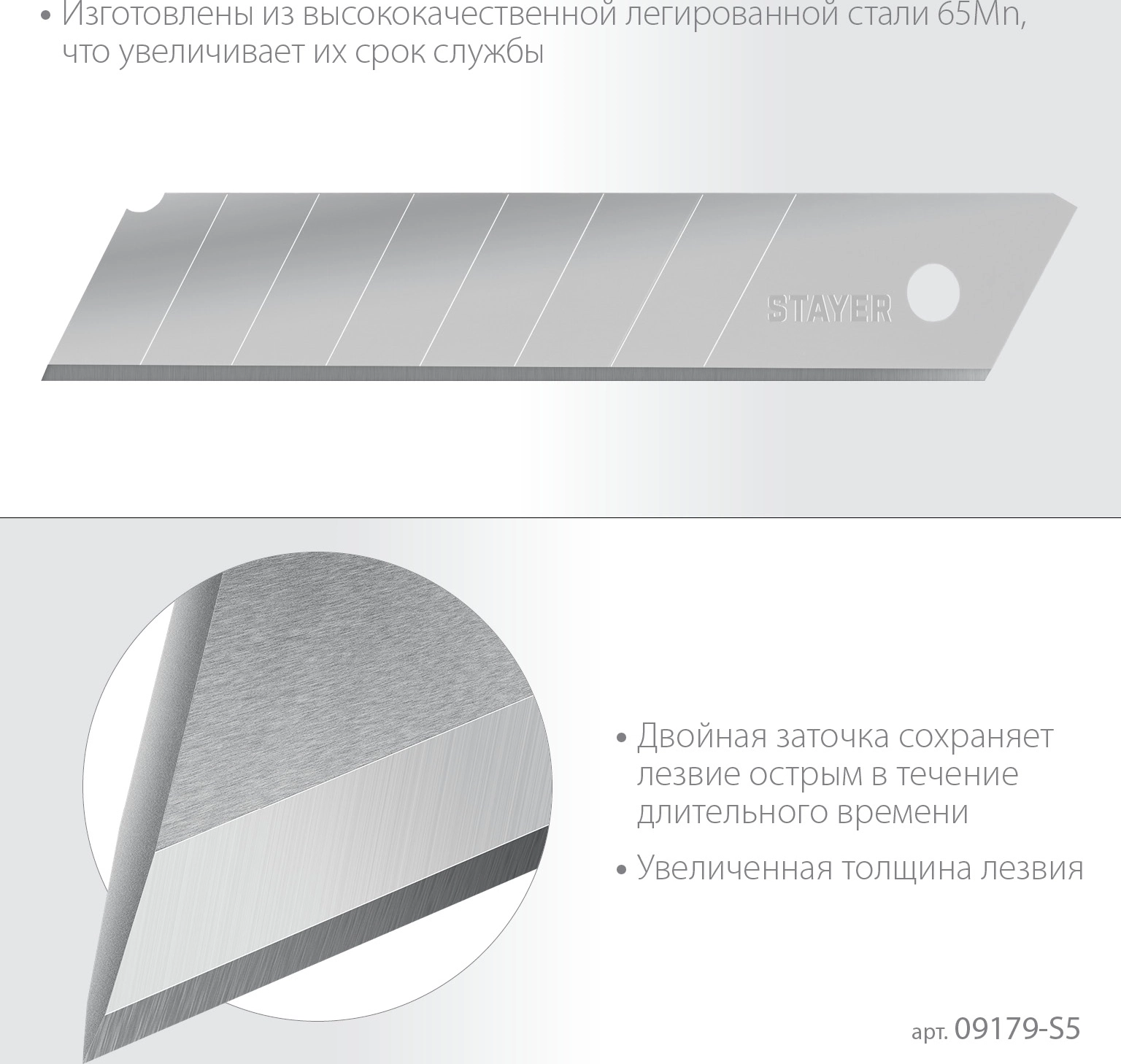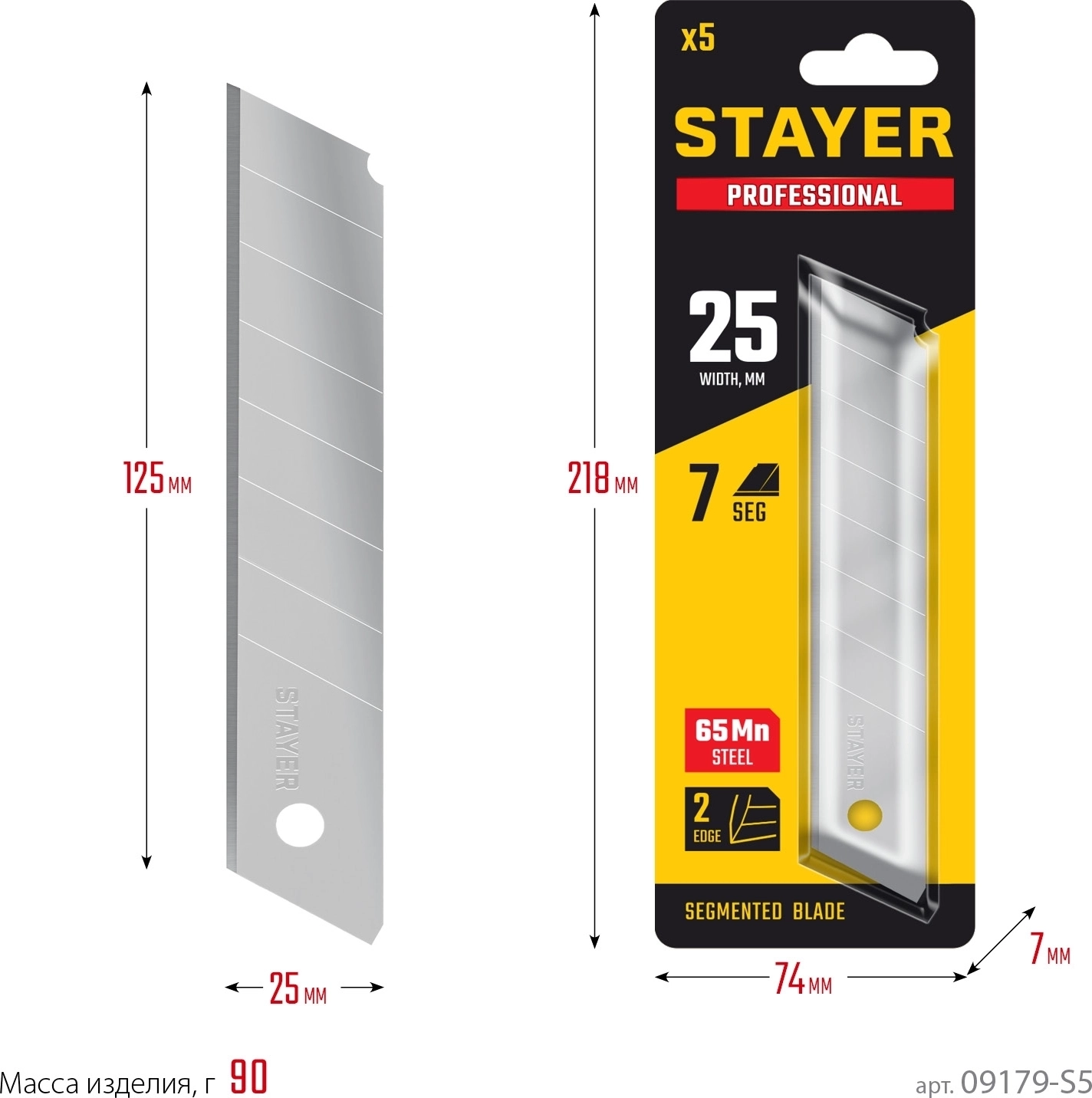 Сегментированные лезвия Professional STAYER 25 мм 5 шт