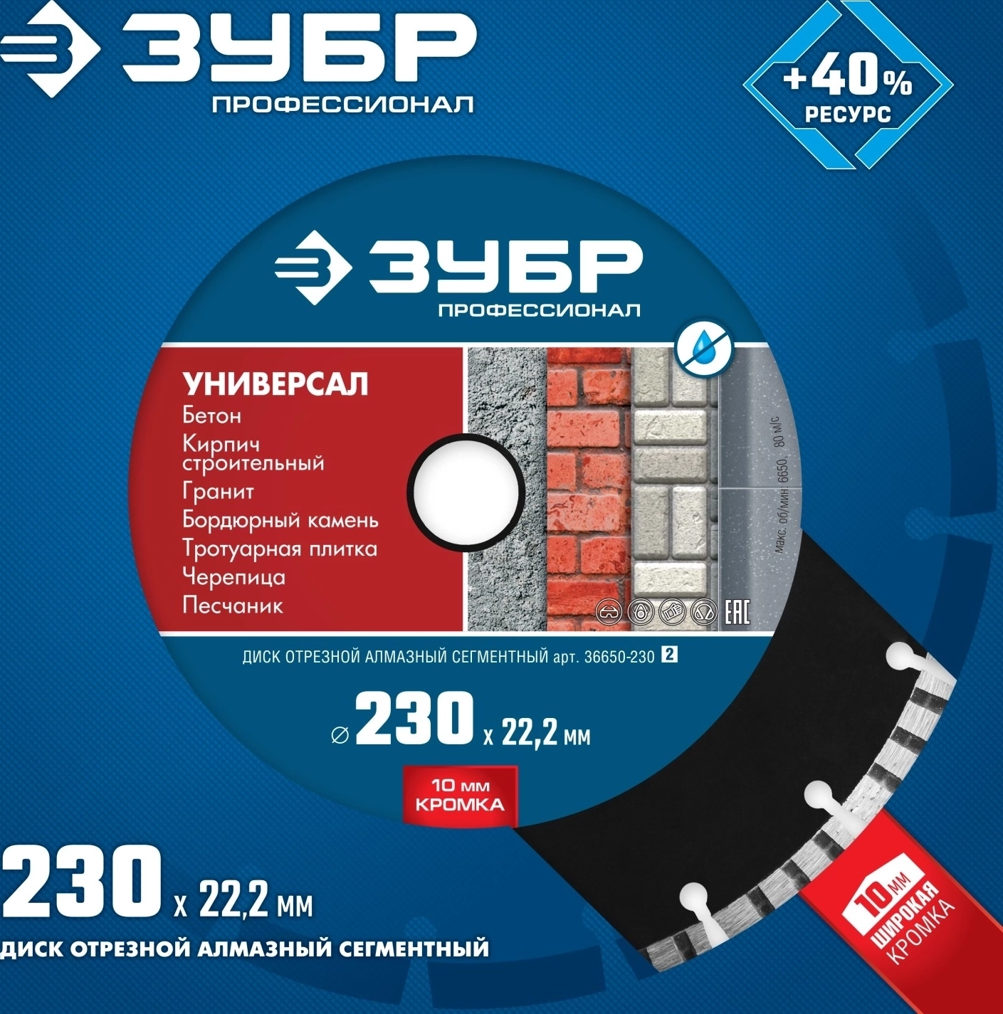 Сегментный алмазный диск ЗУБР Универсал 230 мм 22.2 мм 10 х 2.8 мм