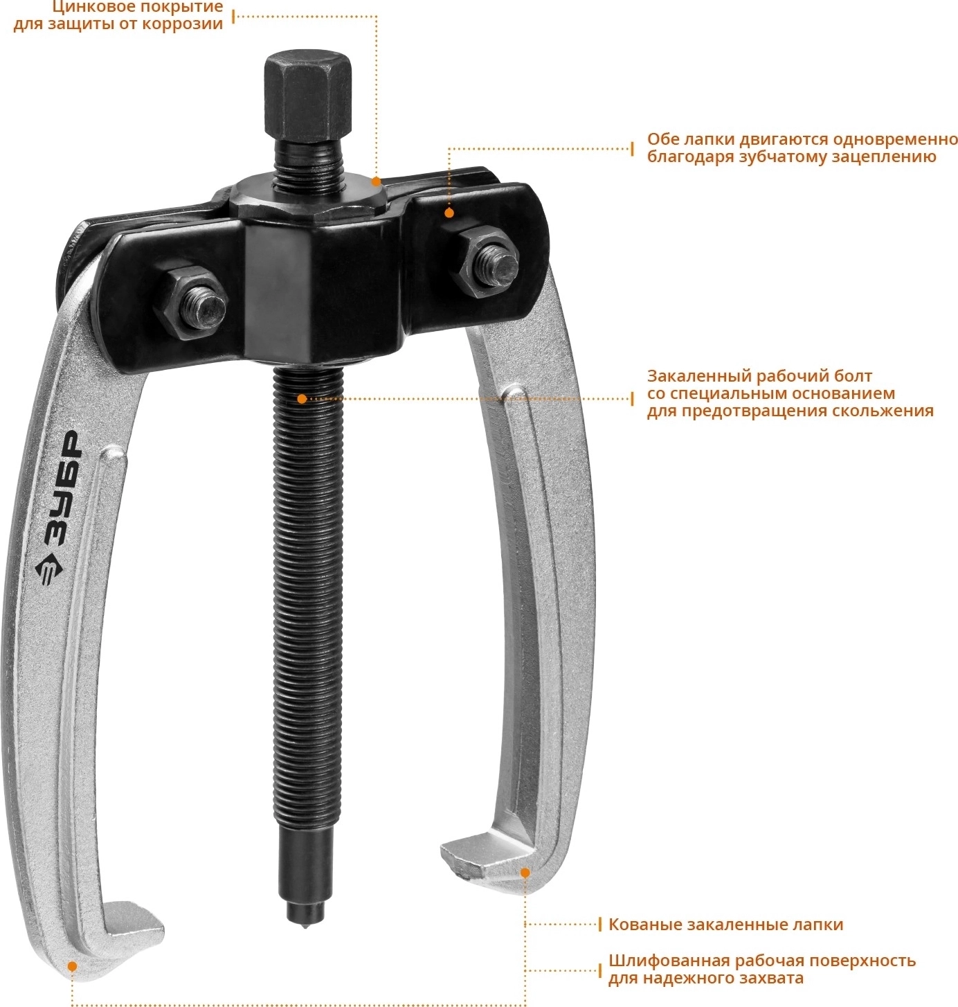 Съемник ЗУБР d 40 - 150 мм шарнирный двухзахватный с серповидными захватами