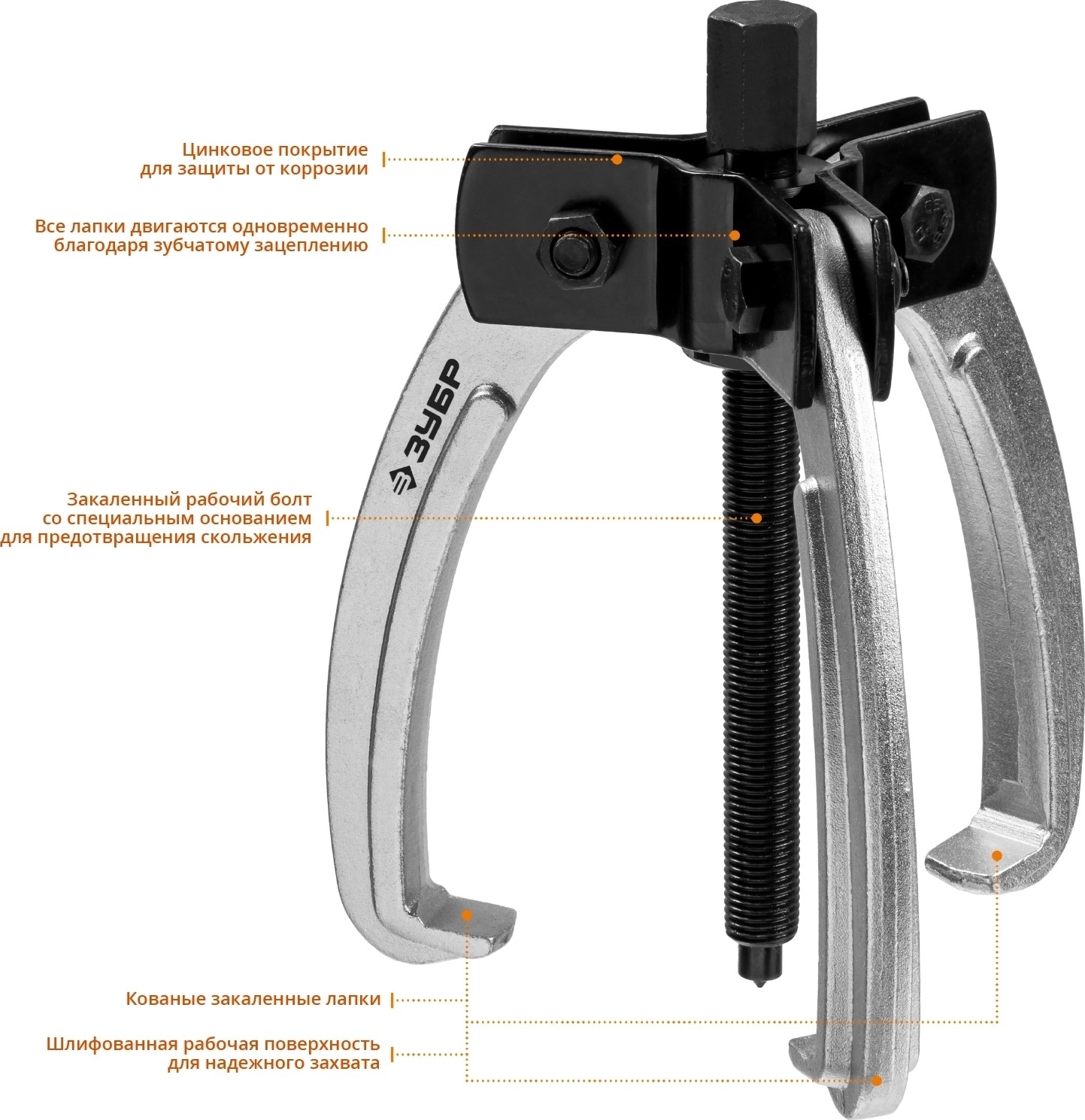 Съемник ЗУБР d 40 - 150 мм шарнирный трехзахватный с серповидными захватами