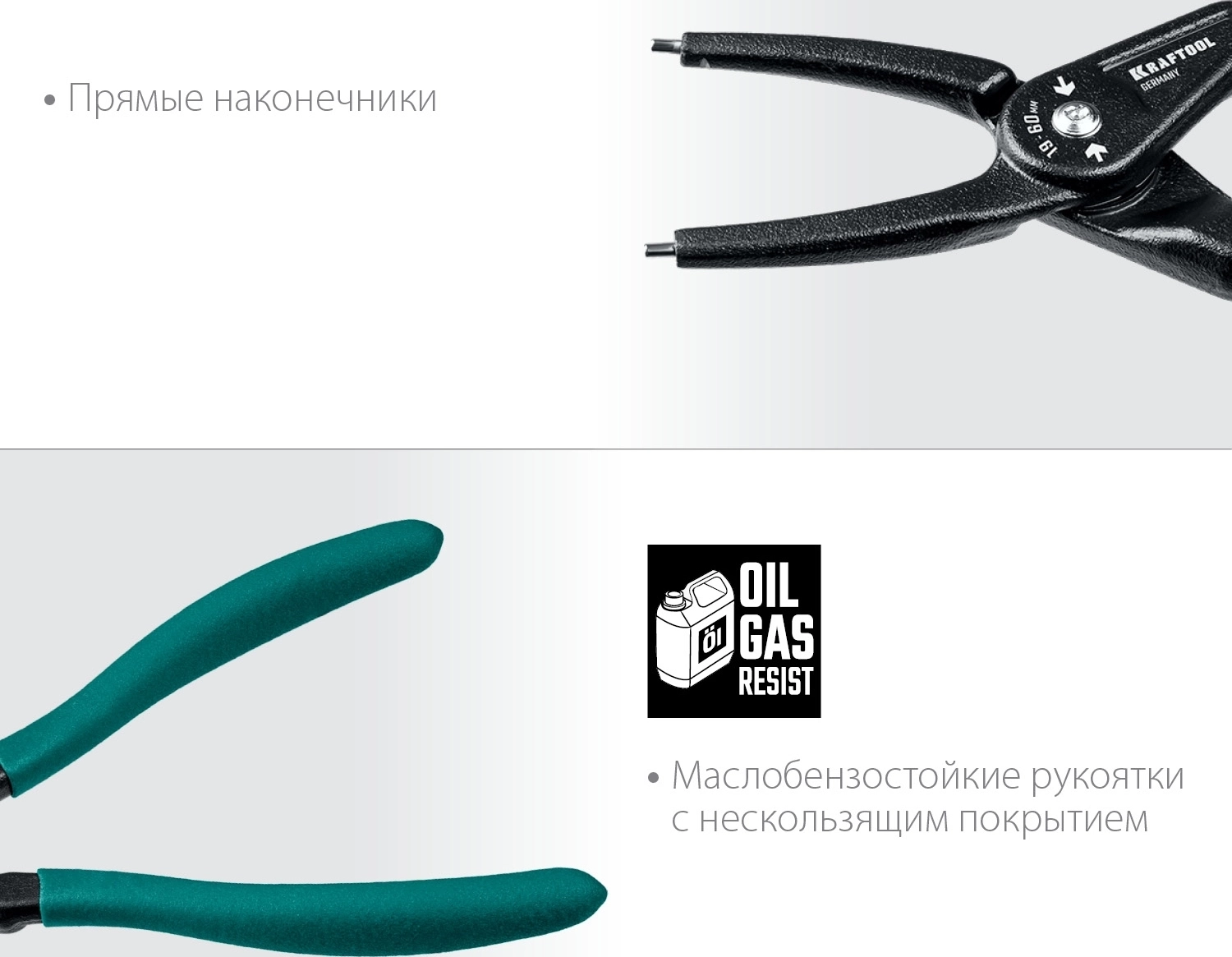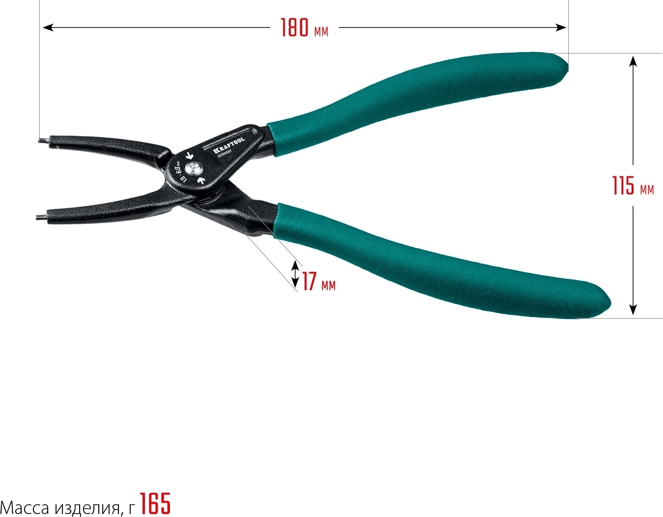 Съемник стопорных колец KRAFTOOL 180 мм, прямые губки, внутренний