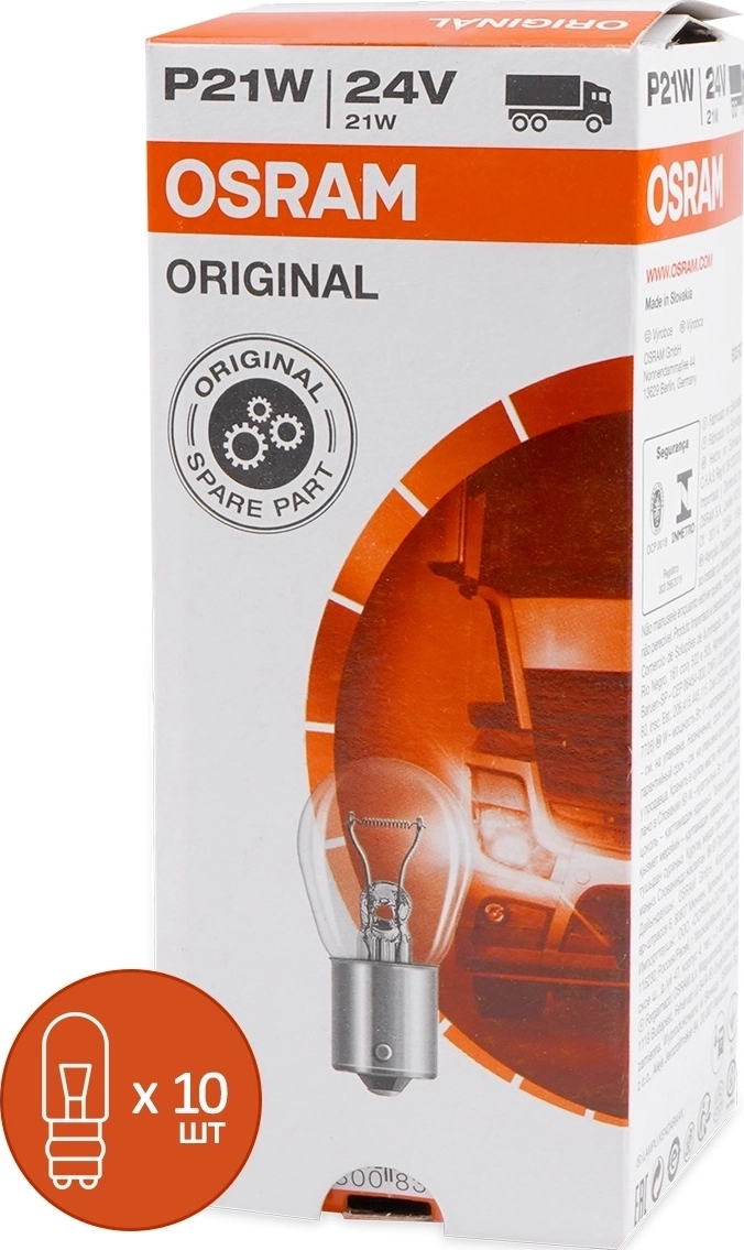 Лампа автомобильная Osram Original Line 24В P21W (21W BA15S)