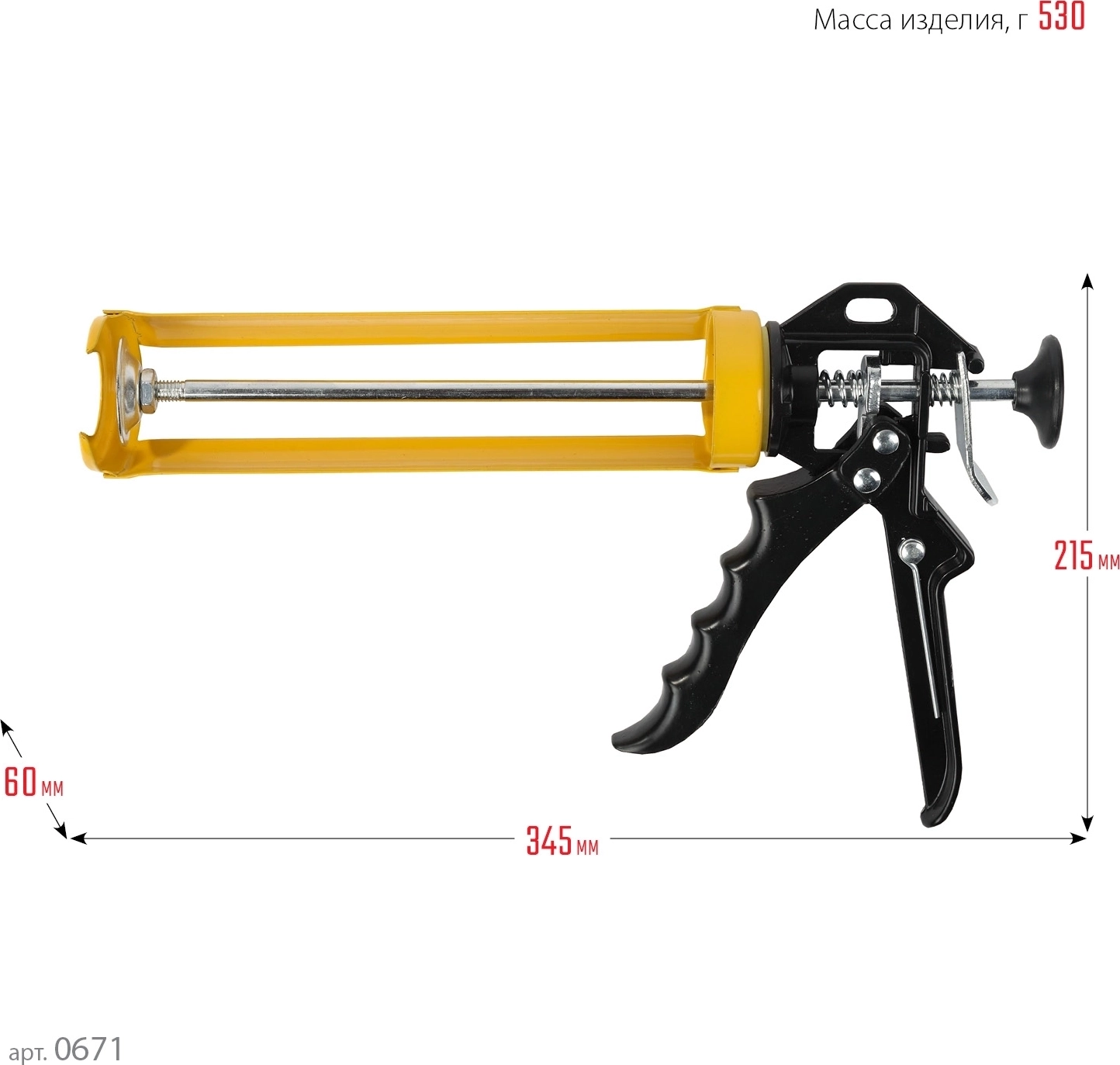 Пистолет для герметиков подходит для работы с картриджами объемом 310 мл, имеет усиленную скелетную конструкцию из стали, ручку из алюминиевого сплава, которые способствуют равномерной подачи клея либо герметика. Данная спецификация обеспечивает прочность и надежность конструкции пистолета при использовании.