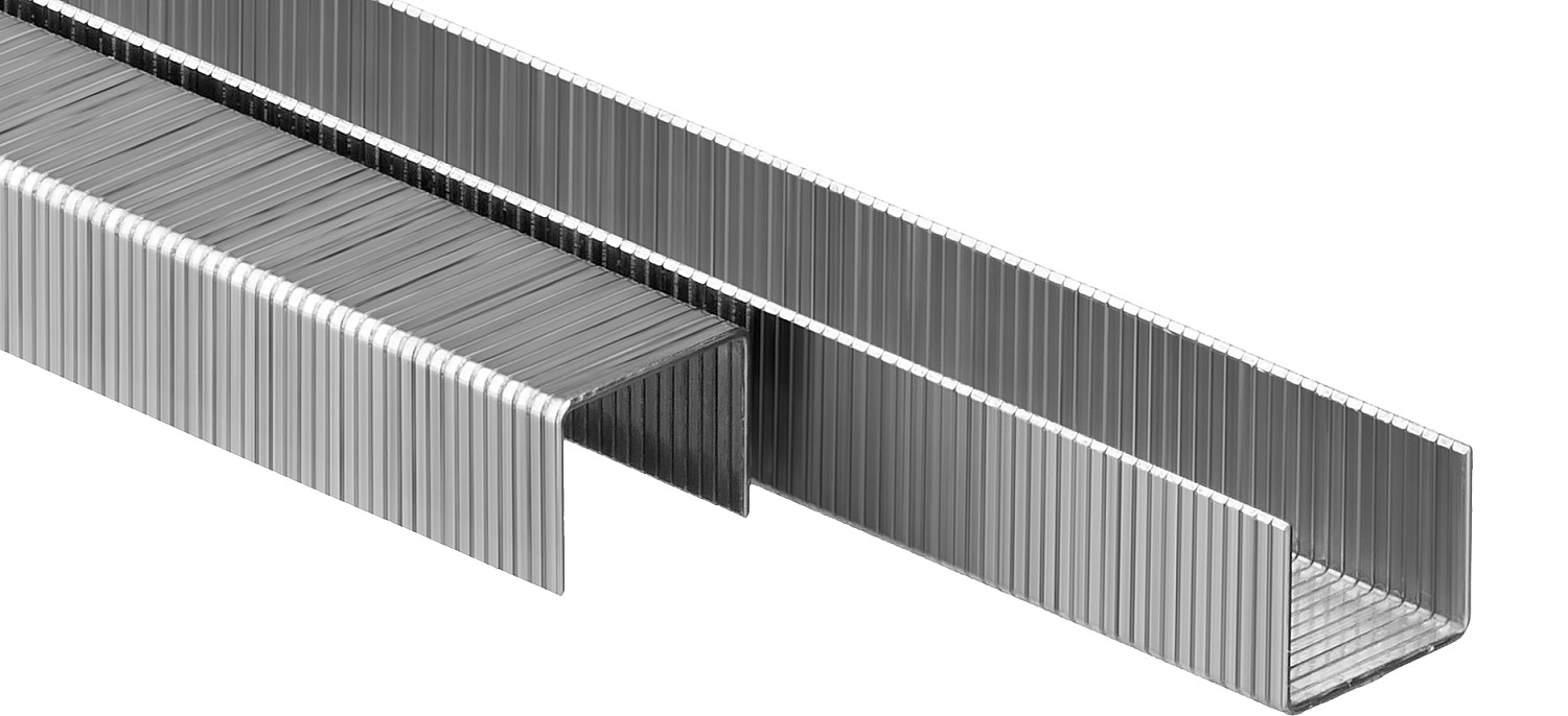 - Скобы с узкой спинкой не повреждают прикрепляемый материал и практически незаметны после установки,
