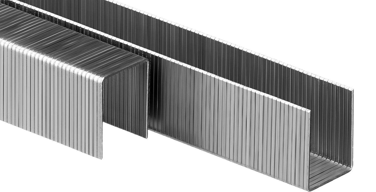 - Скобы с узкой спинкой не повреждают прикрепляемый материал и практически незаметны после установки,