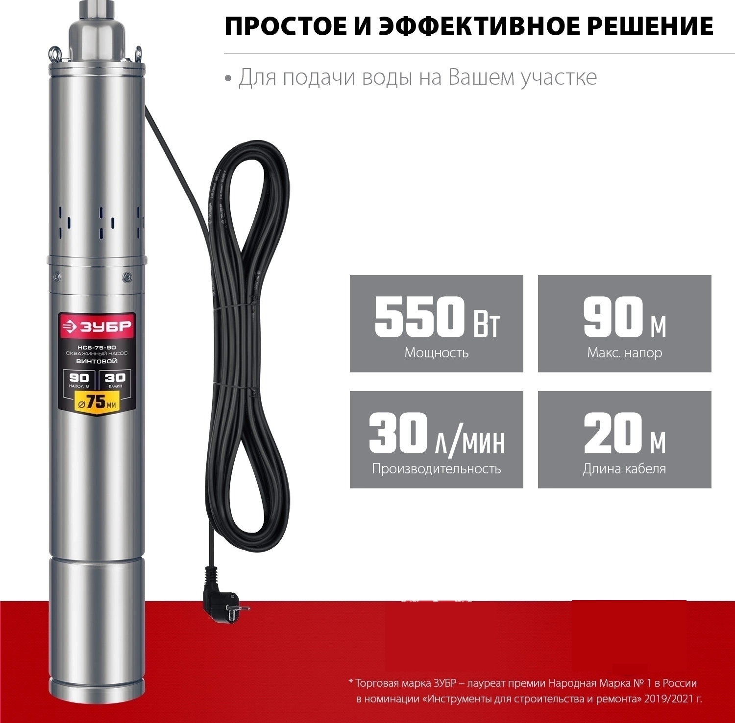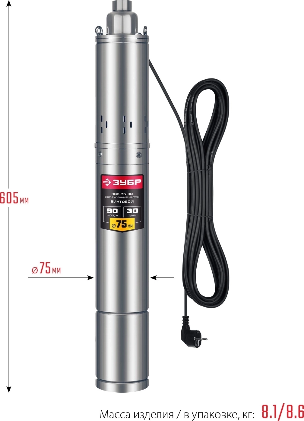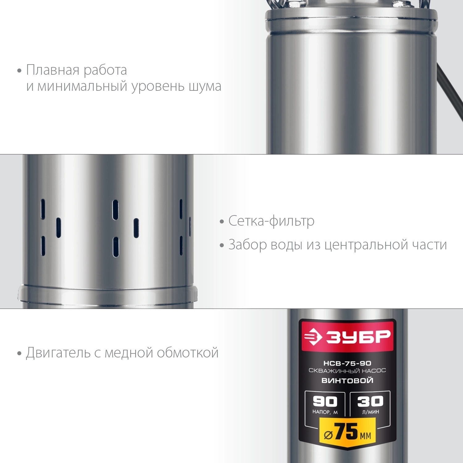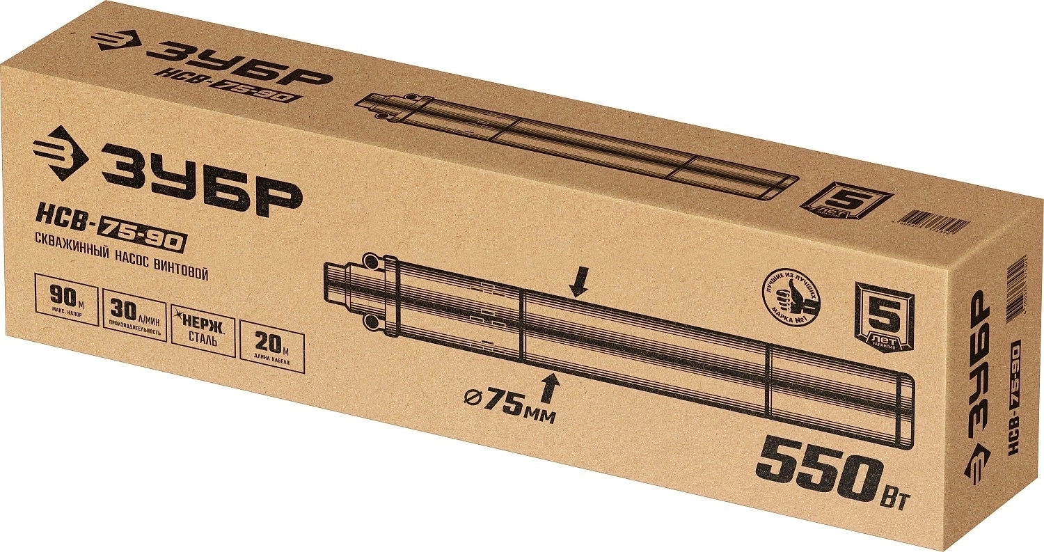 Скважинный насос винтовой ЗУБР 550 Вт нержавеющая сталь 90 м напор