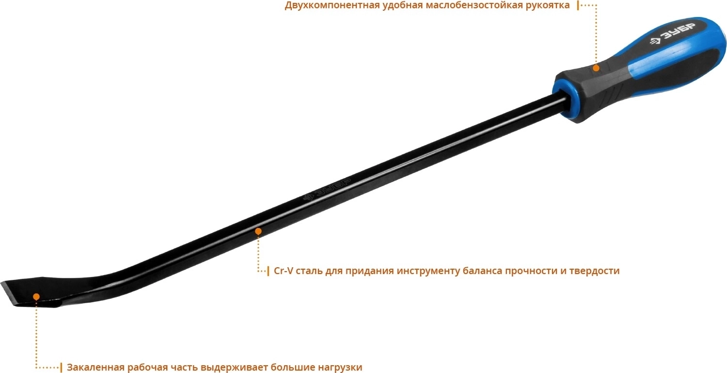 Монтировка слесарная ЗУБР является незаменимым инструментом для демонтажа различных механизмов, конструкций, деталей. Эргономичная форма и высококачествен-ная закаленная сталь обеспечивают высокую скорость и удобство проведения работ.