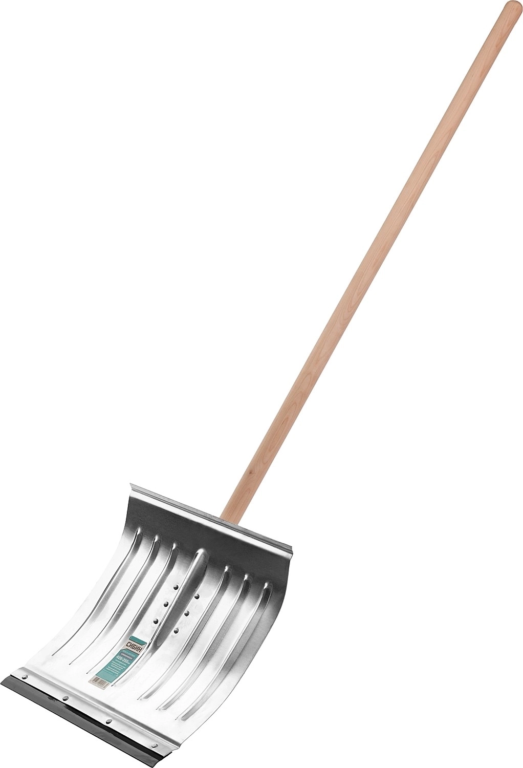 Снеговая лопата СИБИН ЛА-430, 430 мм, алюминиевая, со стальной планкой, с деревянным черенком