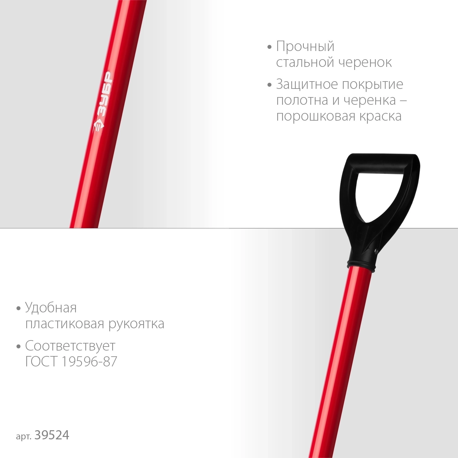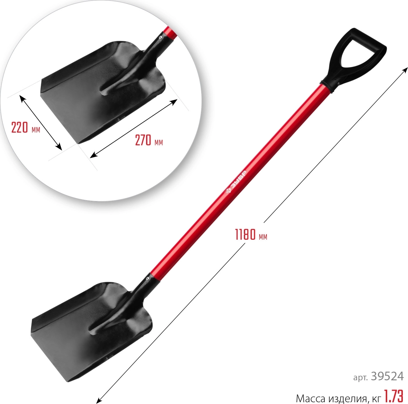 Совковая лопата ЗУБР МАСТЕР, 270 х 220 х 1180 мм, полотно 1.5 мм, стальной прямой черенок с рукояткой, тип ЛСП