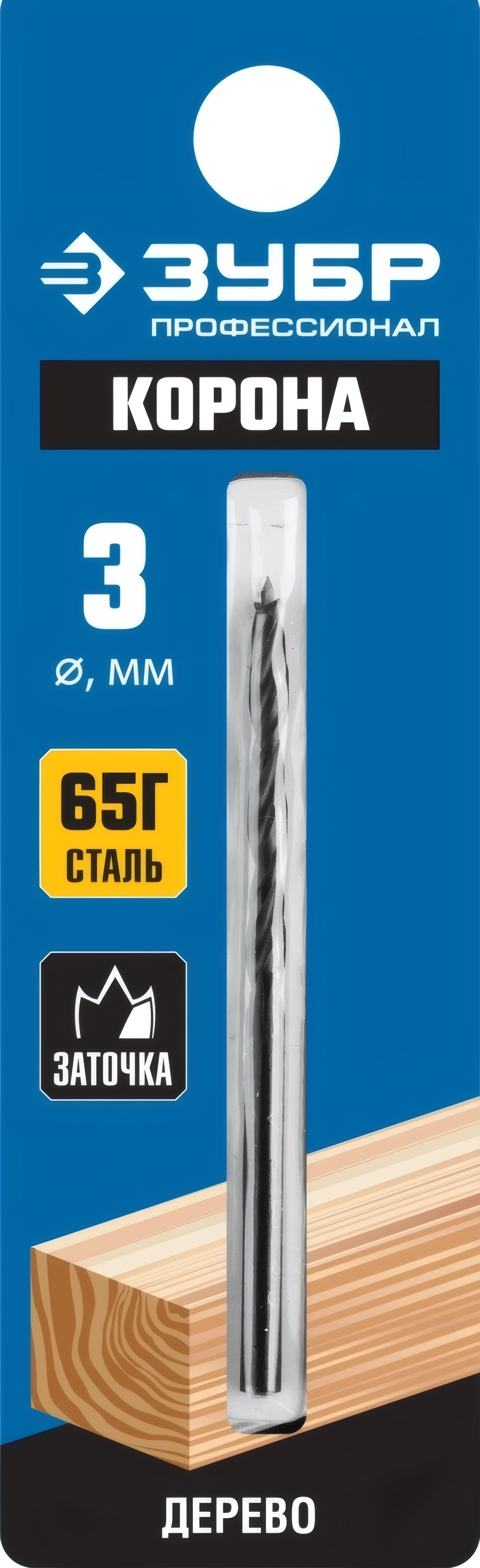 Спиральное сверло по дереву ЗУБР d 3 x 60/30 мм М-образная заточка