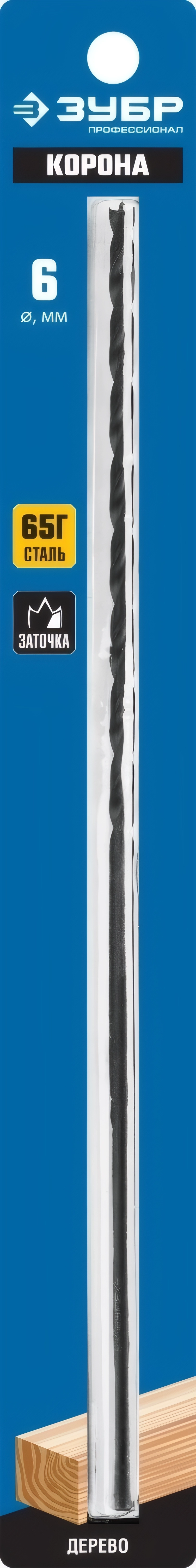 Спиральное сверло по дереву ЗУБР d 6 x 300/150 мм М-образная заточка