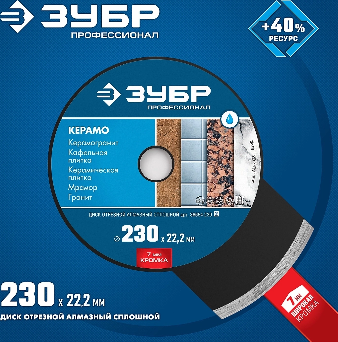 Сплошной алмазный диск ЗУБР Керамо-22 d 230 мм 22.2 мм 7 х 2.4 мм