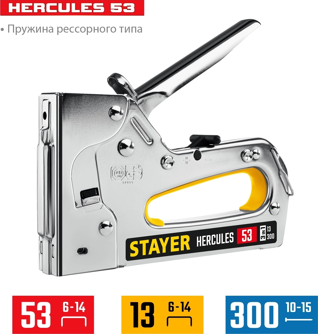Стальной рессорный степлер Professional STAYER HERCULES-53 тип 53 (A/10/JT21) 23GA (6 - 14 мм)/13/300