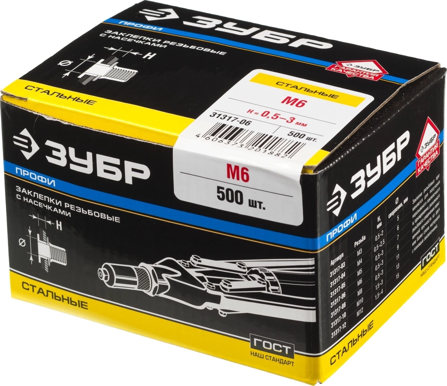 Стальные резьбовые заклепки с насечками ЗУБР М6 станд. бортик 500 шт