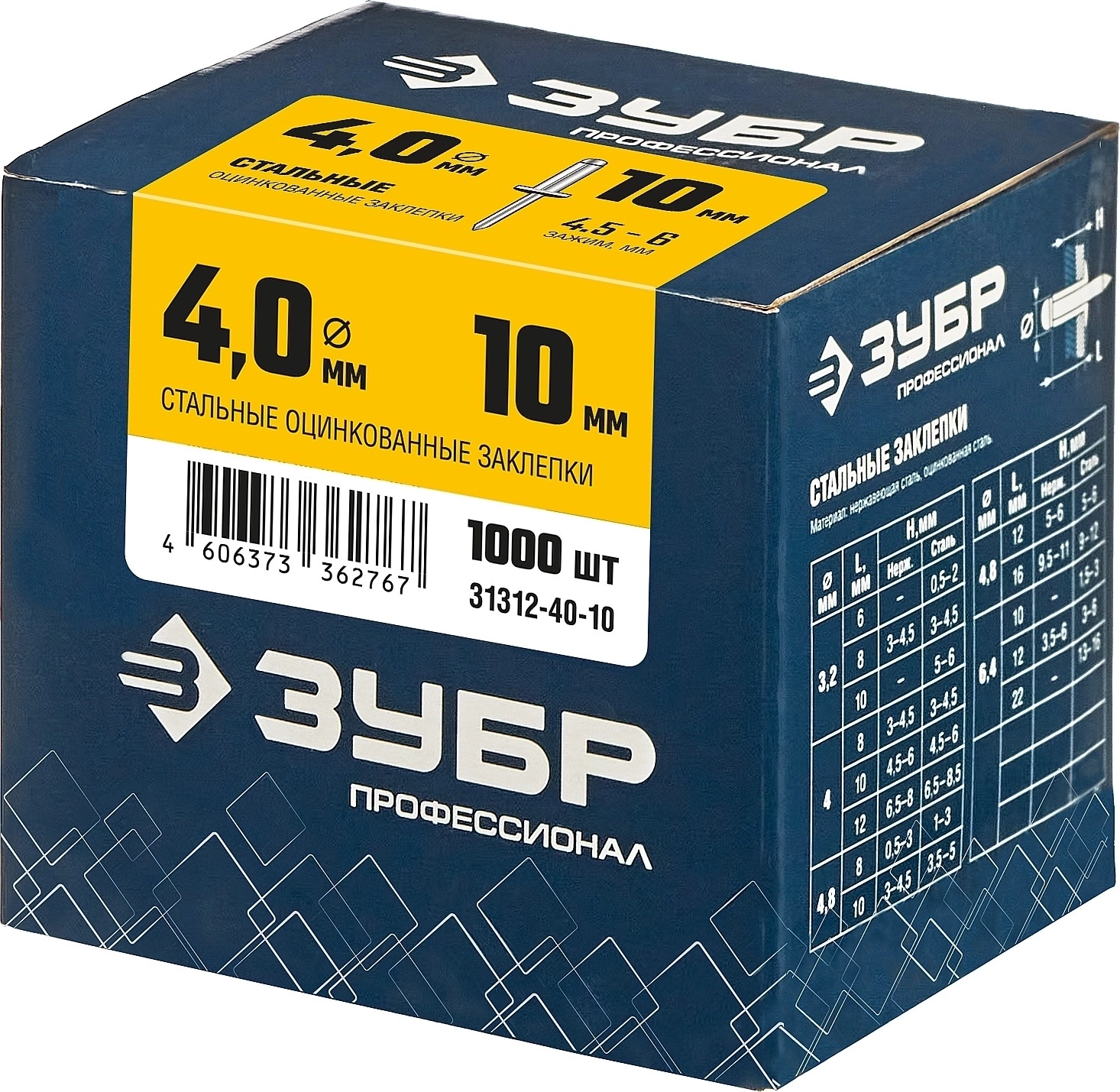 Стальные заклепки ЗУБР 4.0 x 10 мм 1000 шт