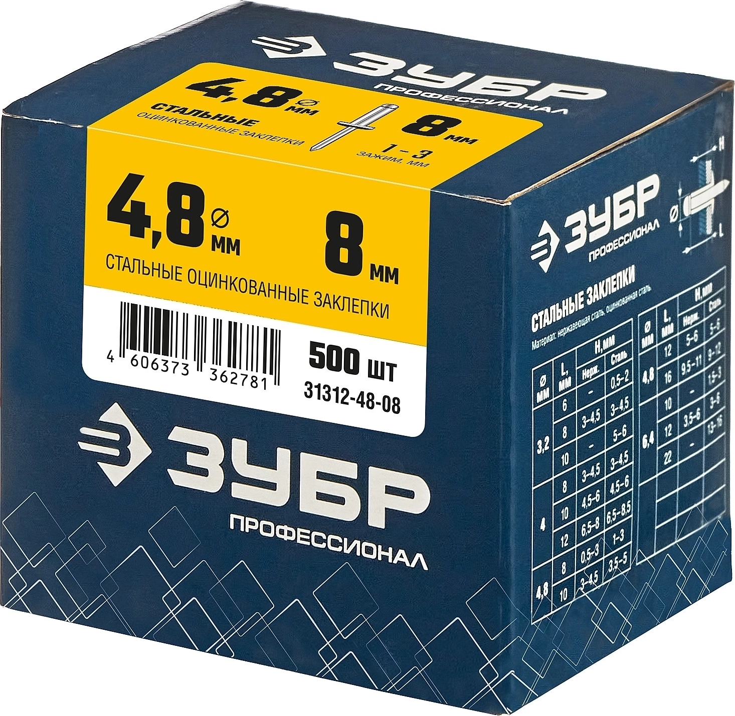 Стальные заклепки ЗУБР 4.8 x 8 мм 500 шт