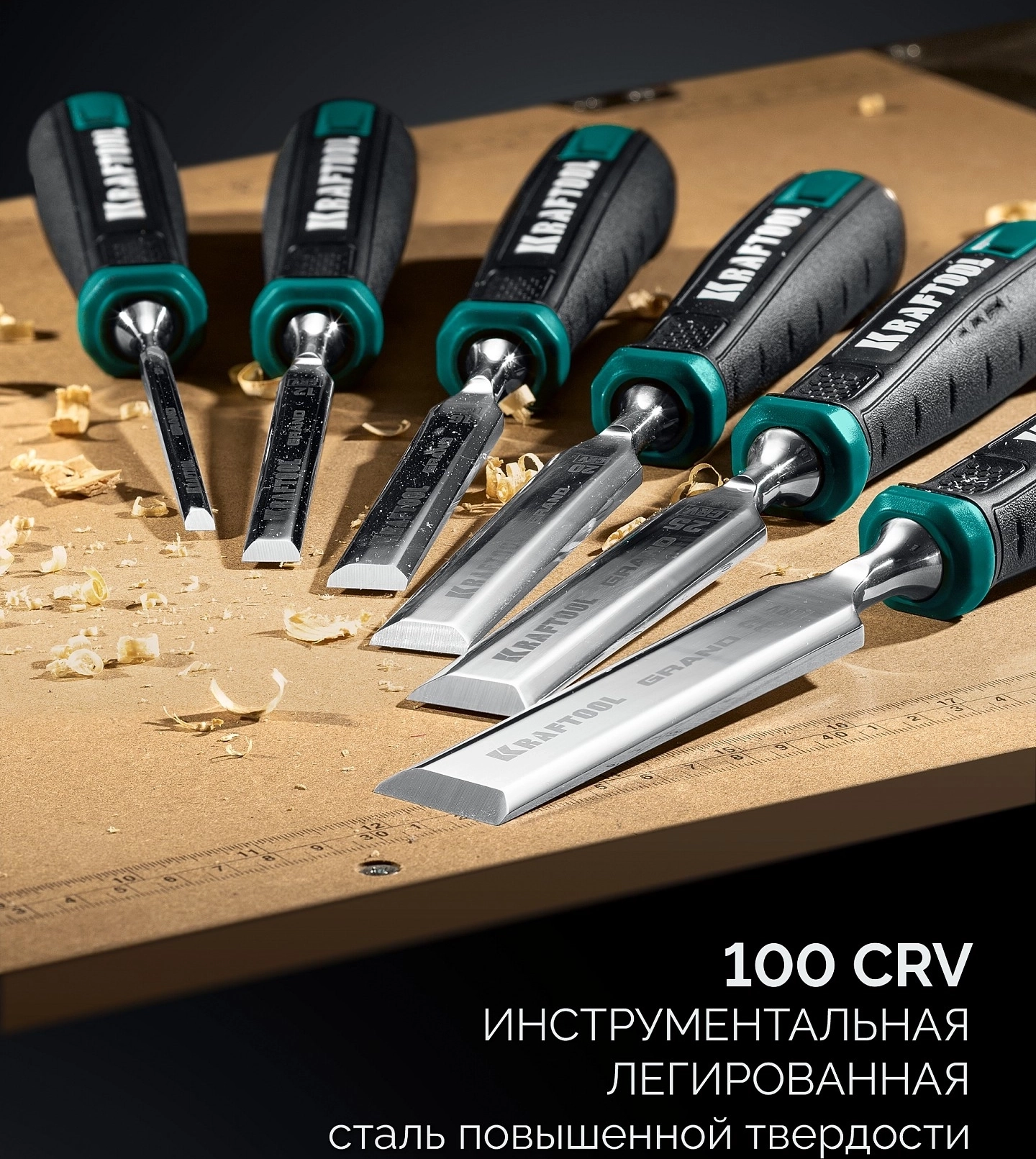 - -Лезвие стамески упрочнено методом индукционной закалки на 2/3 длины до твердости 65 HRC,